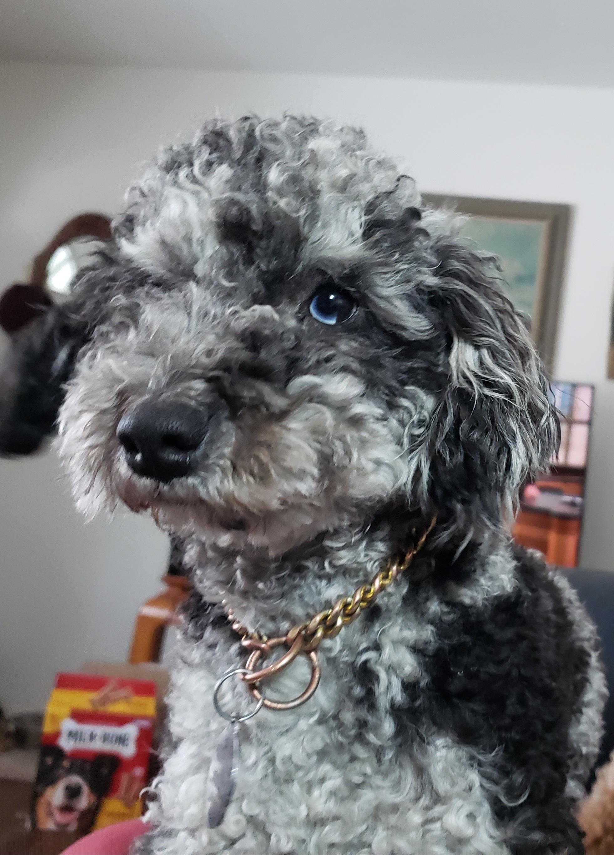 Mister is a male Poodle. Carefully selected as a great representative of his breed, Melinda decided to make him part of their program. Melinda has passed Good Dog’s screening process, which involved a review of their breeding practices, environment, and the mental and physical health of their dogs.
