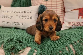 It was such a pleasure to work with Lindsi to find our Hazel! Not only did she answer all of my questions and help me understand her processes, she sent photos and videos very frequently and met us half way just as promised! Hazel is just as sweet as she described and is quickly fitting into our family! I would work with Lindsi and Dogwood Acre Dachshunds again and again!