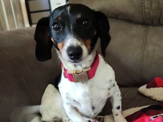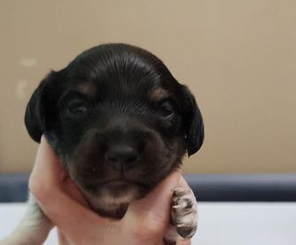 Say hello to Timber, our gorgeous black and tan piebald mini dachshund mama with just a touch of ticking! Timber is full of playful energy and always ready for a game—until she finds the perfect warm spot to curl up and nap. She can be a little shy and submissive at first, but once she knows you, she’s all heart—especially when it comes to our kids! Her gentle nature and sweet personality make her an amazing mom and a joy to have in our home.