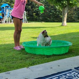 Brett was a great communicator throughout the whole process. She sent us video updates while we waited for our adoption day to come. She was not pushy at all and was surprisingly patient. She was understanding with the anxiety of a long distance adoption and offered to fly Rosie to us personally. She quickly responded to any questions we had before and after the adoption. She was also very understanding of silly puppy concerns that we had. Rosie is a typical happy puppy learning to adjust to her home. She was initially a little nervous getting to know new faces, but is getting comfortable very quickly. She does very well with potty training with only a few accidents. She will sit for a treat, and we are working on shake. She responds very well to the command "NO." She quickly learned where the dog treats are stored and runs when she hears us open the cabinet. She loves playing in the baby pool and the sprinkler. She runs around the yard with the other dogs, but always stays close by. She is not fond of the kennel so far, so kennel training is our newest challenge! I think Rosie has been a very easy puppy to work and we enjoy all the cute and exciting things she does throughout the day. We are thrilled with our adoption experience. I would definitely adopt from her again in the future or recommend her to my family or friends who were looking to adopt.