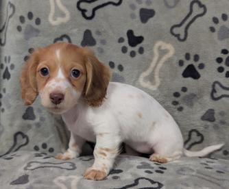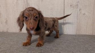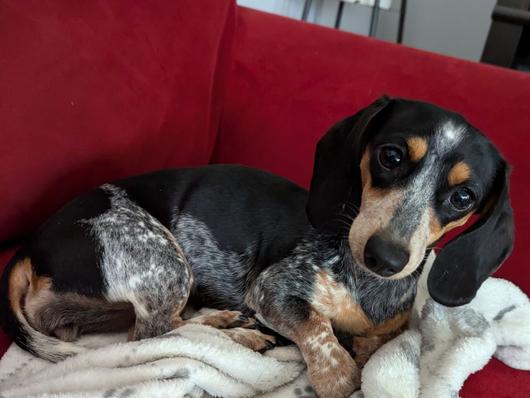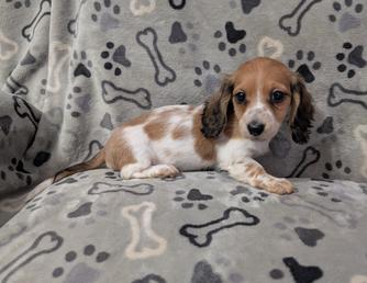 Ashley genuinely cares about her pups! She is experienced with doxies needs, willing to answer questions & go beyond in sharing her knowledge, no pressure sales, very willing to provide pics/videos during the growing wait time, very flexible with transportation needs, and provides a generous going-home bag. Rosie is such a beautiful dear, blk/tan LH piebald. Sally Stalnaker (Jun 27, 2025)