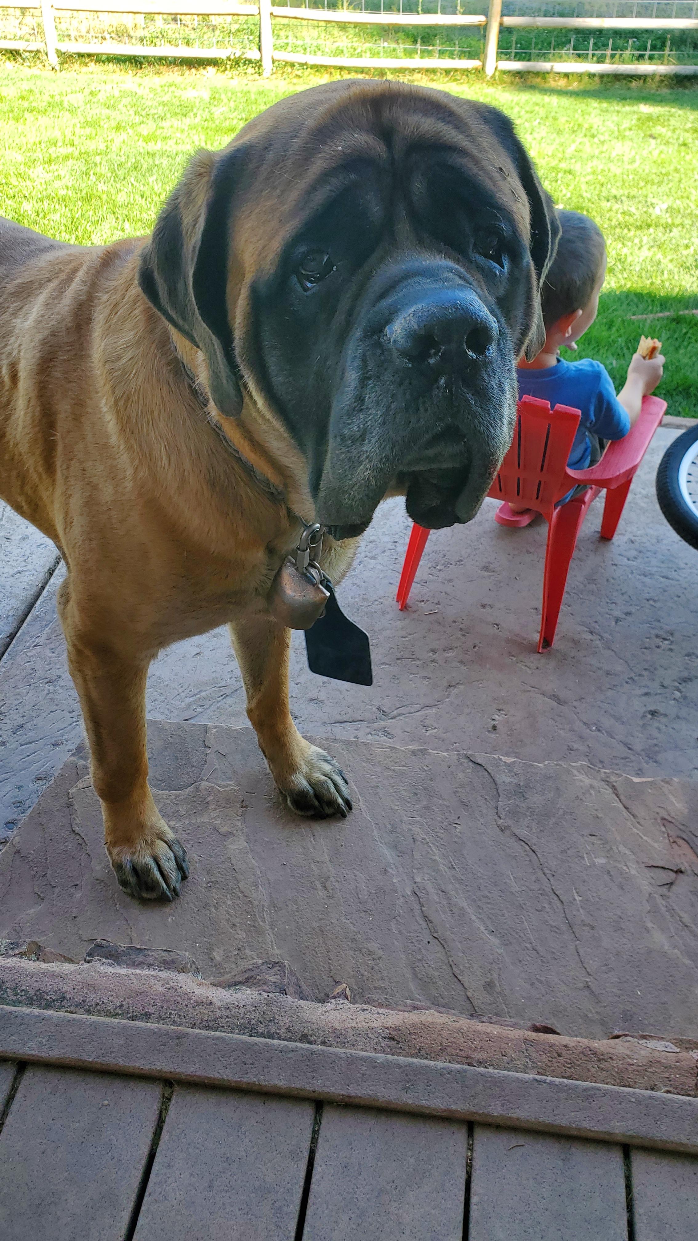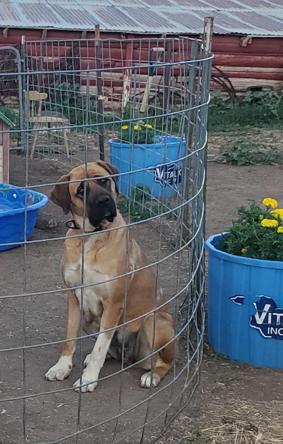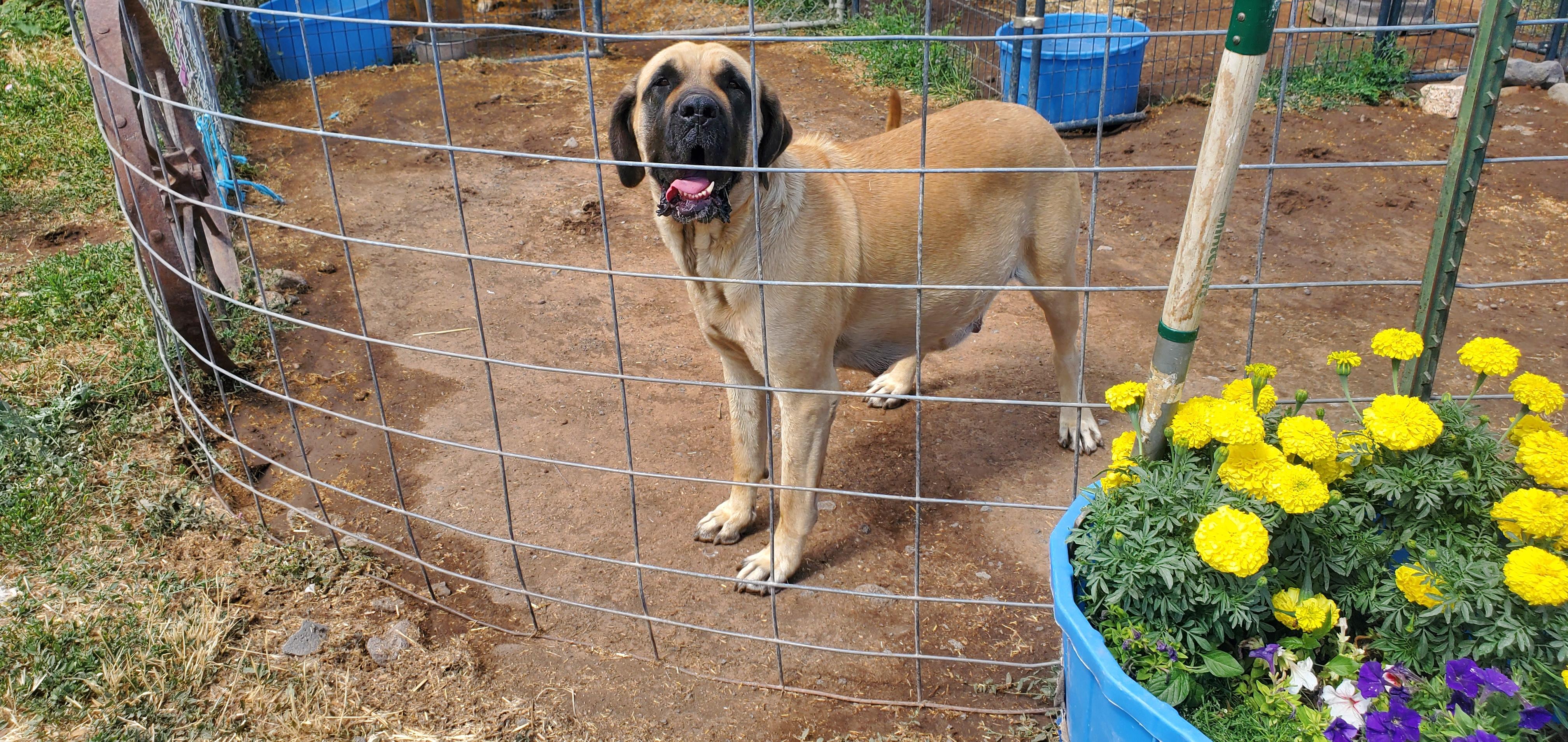 Grizz (Big Frog) is a male Mastiff. Carefully selected as a great representative of his breed, Maura decided to make him part of their program. Maura has passed Good Dog’s screening process, which involved a review of their breeding practices, environment, and the mental and physical health of their dogs.