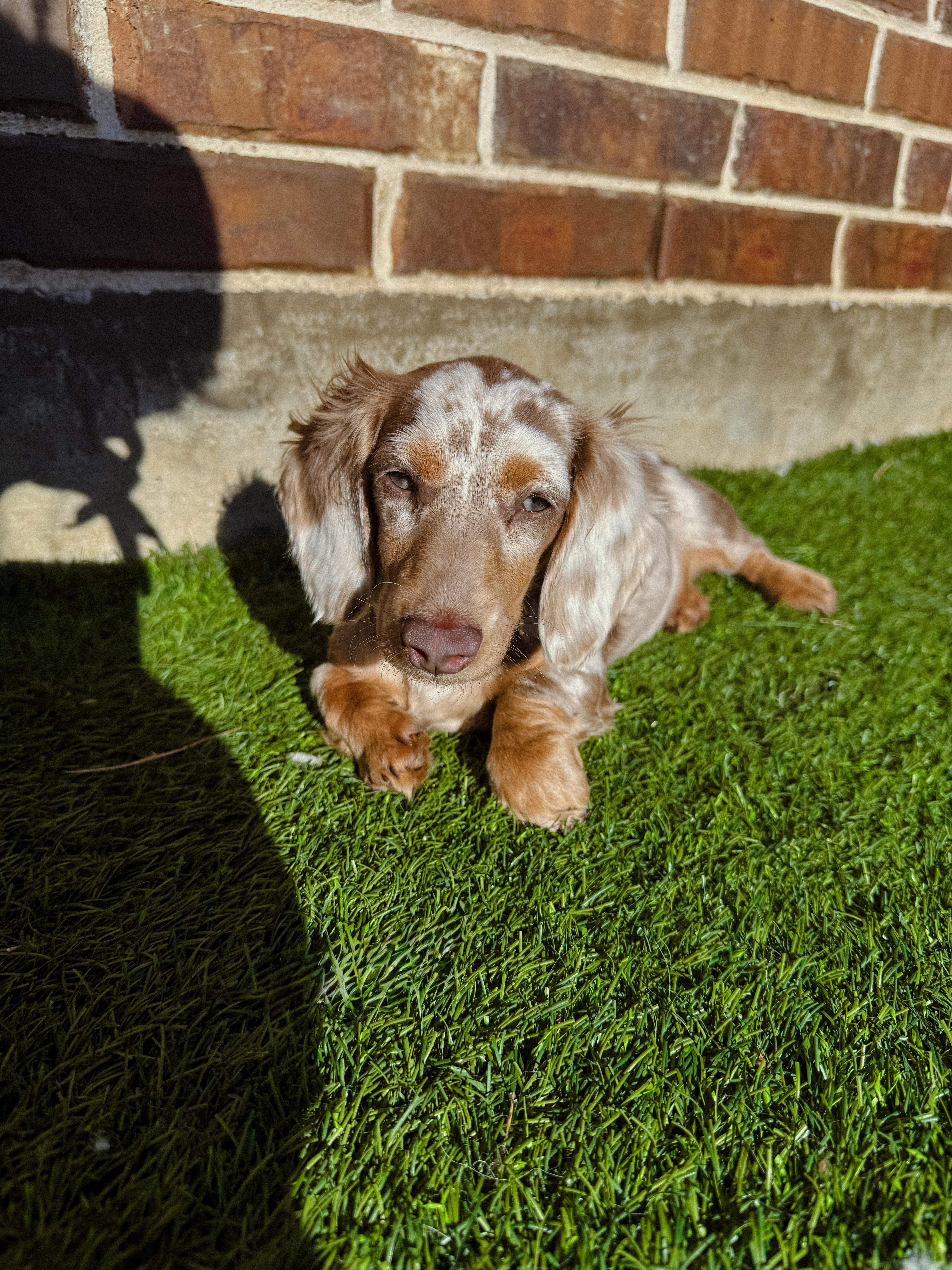 I'm Lauren S., the breeder behind Dollhouse Doxies located in Aubrey, TX. We love this breed and the experience of having litters! We thoroughly preform a health and genetic test on all of our sires & dams prior to breeding. Our mission is to raise pups that are set to become the best companions. We are dedicated to raising the bar for thoughtful breeding with optimal health in mind. We do our best to produce puppies that have the best chance at living long, happy, and healthy lives as your best friend!