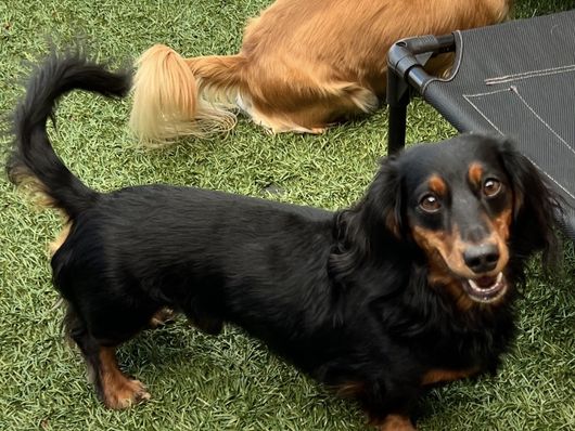Bella is a female Dachshund. Carefully selected as a great representative of her breed, D decided to make her part of their program. D has passed Good Dog’s screening process, which involved a review of their breeding practices, environment, and the mental and physical health of their dogs.