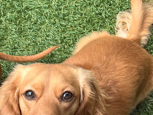 Lilly is a female Dachshund. Carefully selected as a great representative of her breed, D decided to make her part of their program. D has passed Good Dog’s screening process, which involved a review of their breeding practices, environment, and the mental and physical health of their dogs.