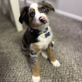 Our boy Blu has settled into our family nicely so far. He is the sweetest, floofiest, softest boy ever, we are so in love! We had a great experience working with Stephanie. She consistently gave us pupdates and made sure we knew exactly how Blu was doing. Once we are ready for another we will be back…highly recommend Dollie’s Aussie Farm!
