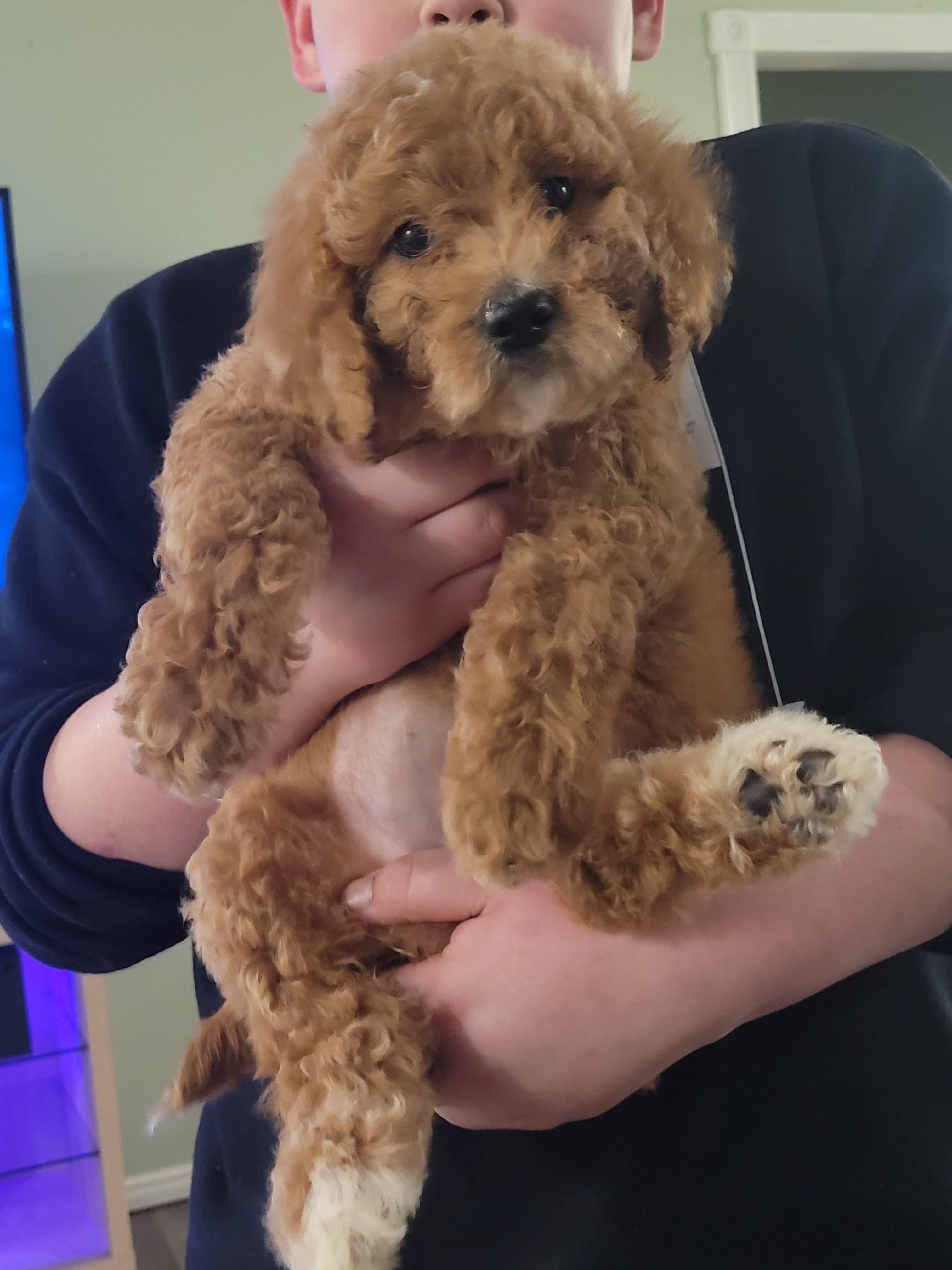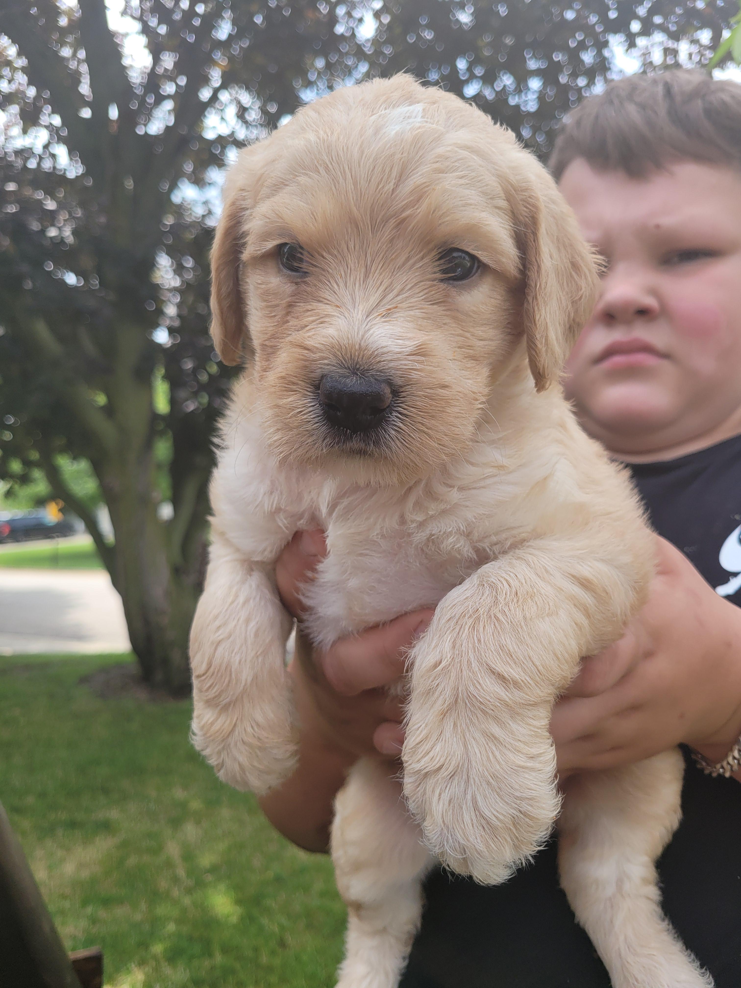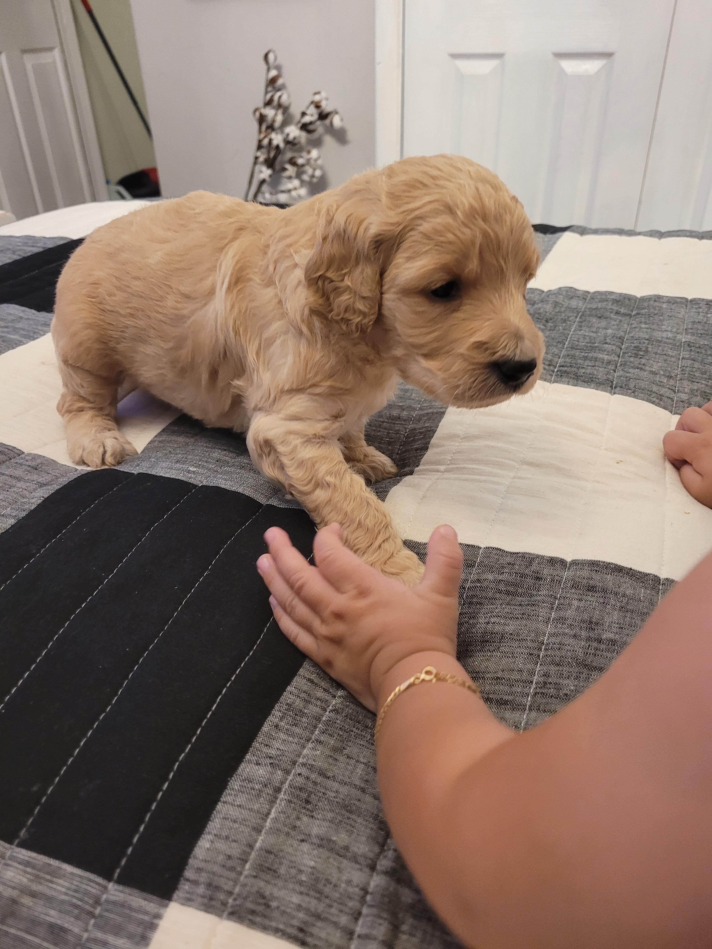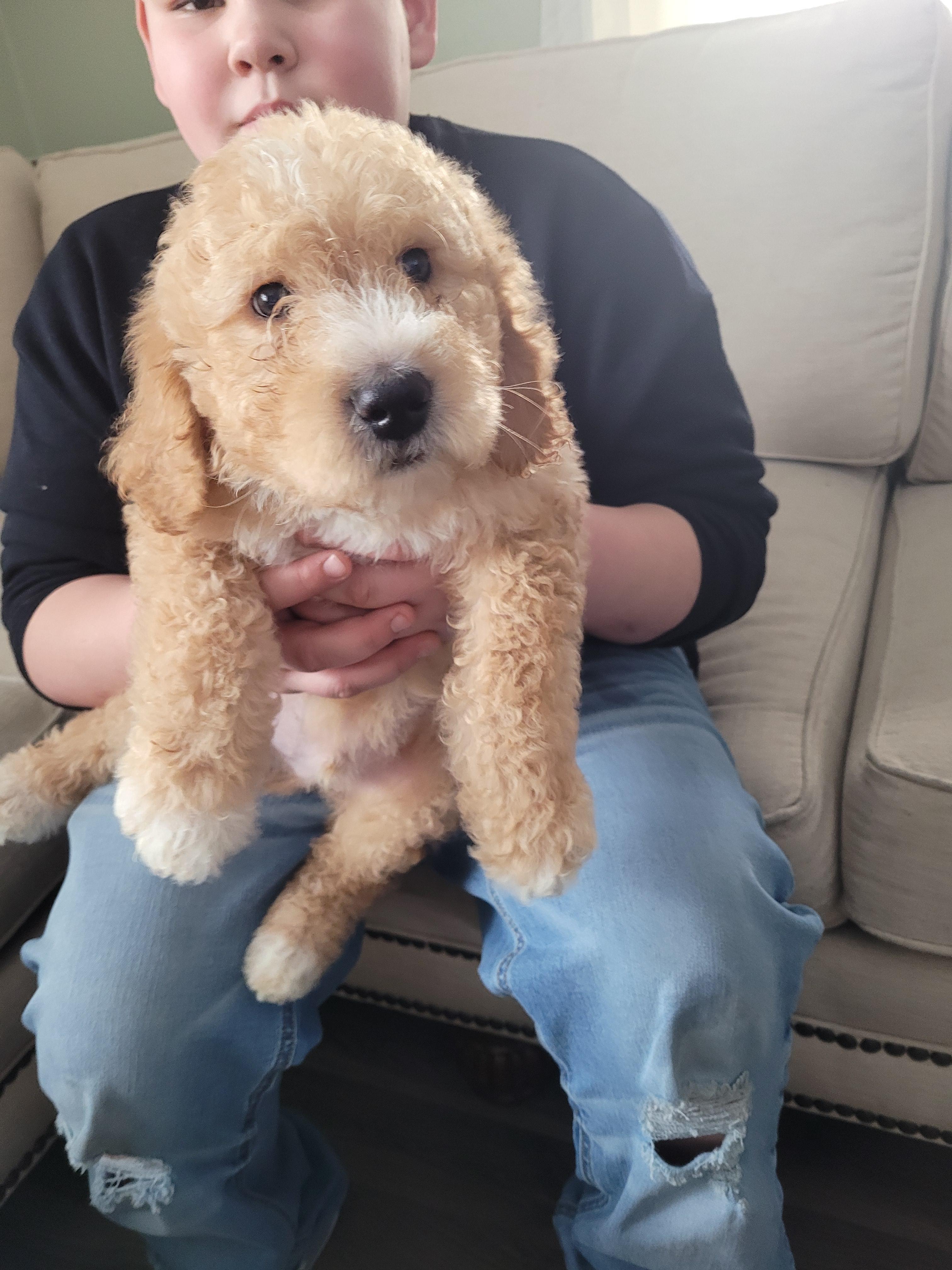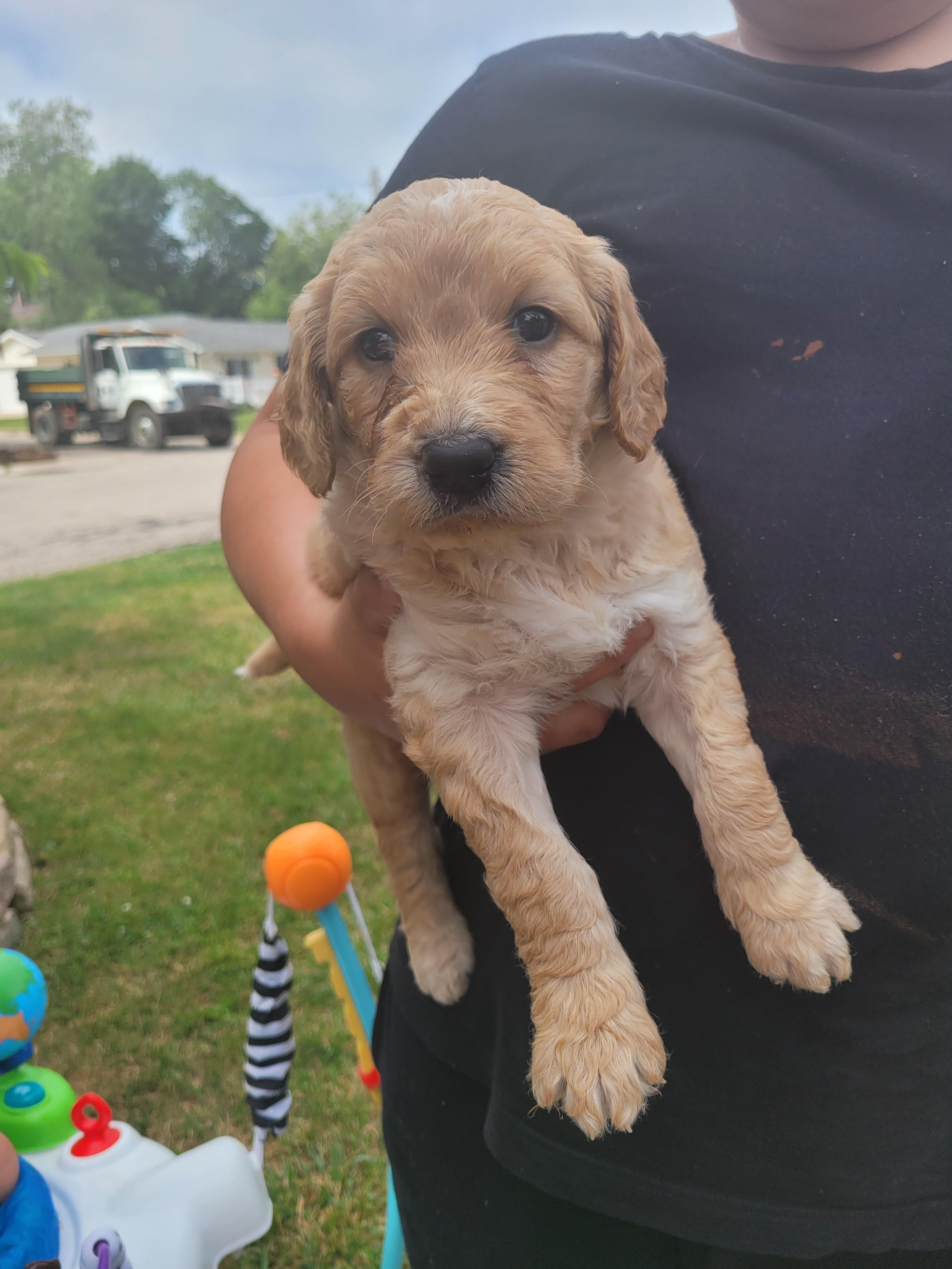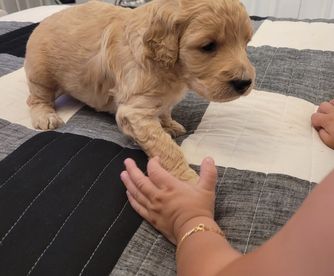 I'm Dominique C., the breeder behind Dominique's Doodles located in Harvard, IL. We responsibly breed, raise, and socialize healthy pups so others can enjoy the gift of living life with a Goldendoodle! We are home-based breeders dedicated to bringing loving, high-quality Goldendoodles into the homes and hearts of their forever families. We love our dogs and are passionate about raising our puppies to be the best family companions.