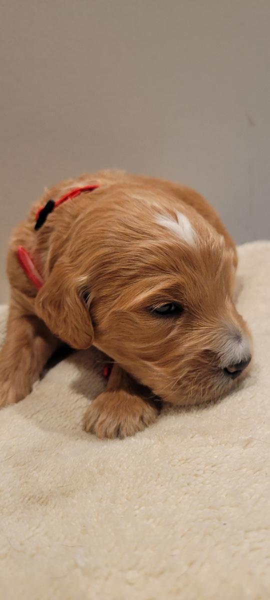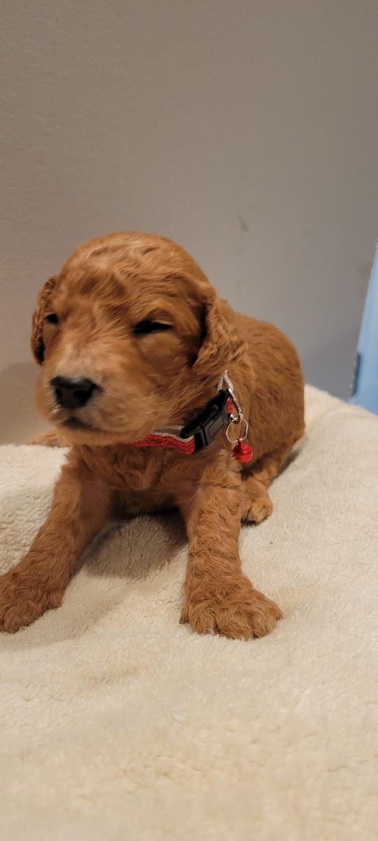 Daisy is a female Goldendoodle. Carefully selected as a great representative of her breed, Dominique decided to make her part of their program. Dominique has passed Good Dog’s screening process, which involved a review of their breeding practices, environment, and the mental and physical health of their dogs.