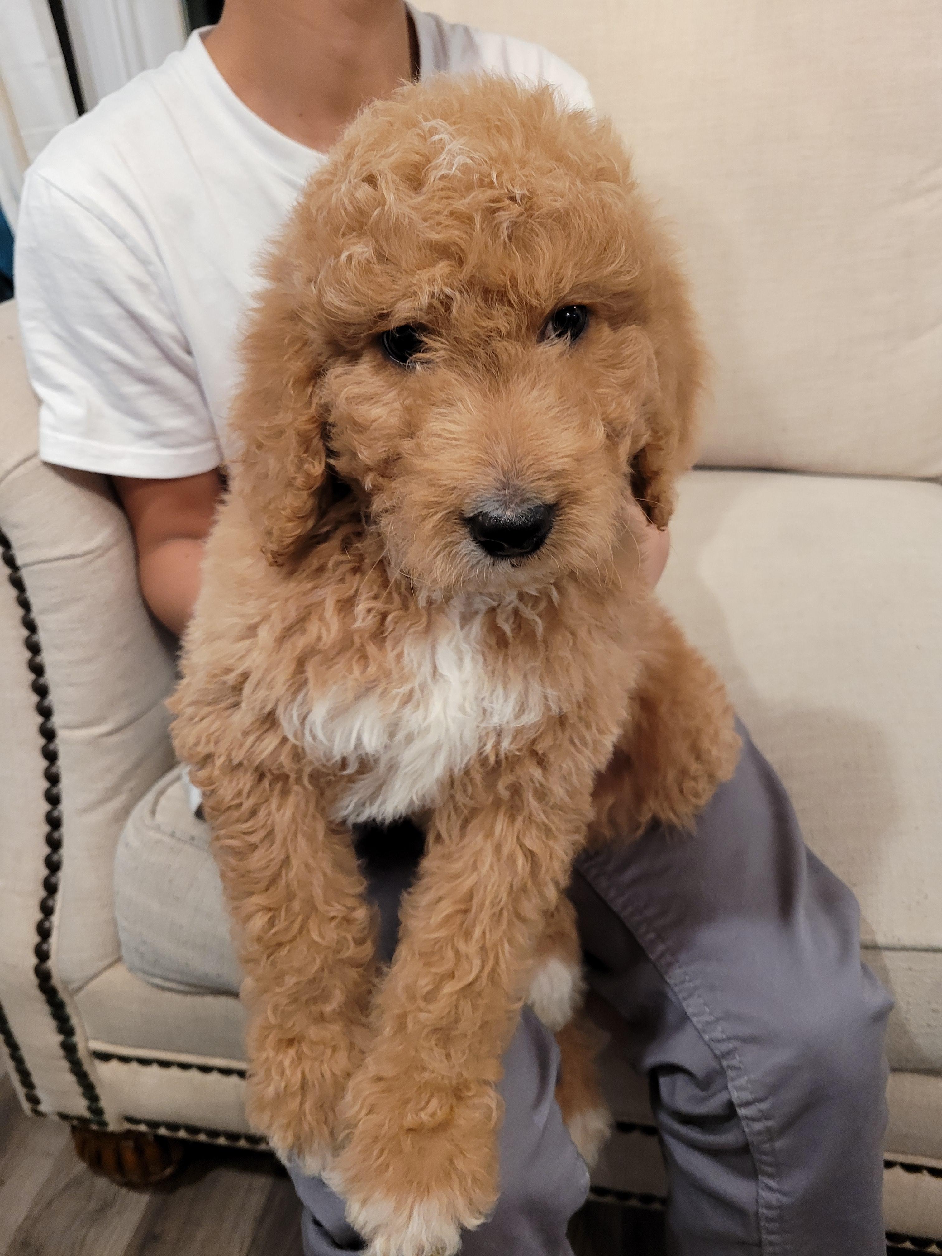 Peluche is a male Goldendoodle. Carefully selected as a great representative of his breed, Dominique decided to make him part of their program. Dominique has passed Good Dog’s screening process, which involved a review of their breeding practices, environment, and the mental and physical health of their dogs.