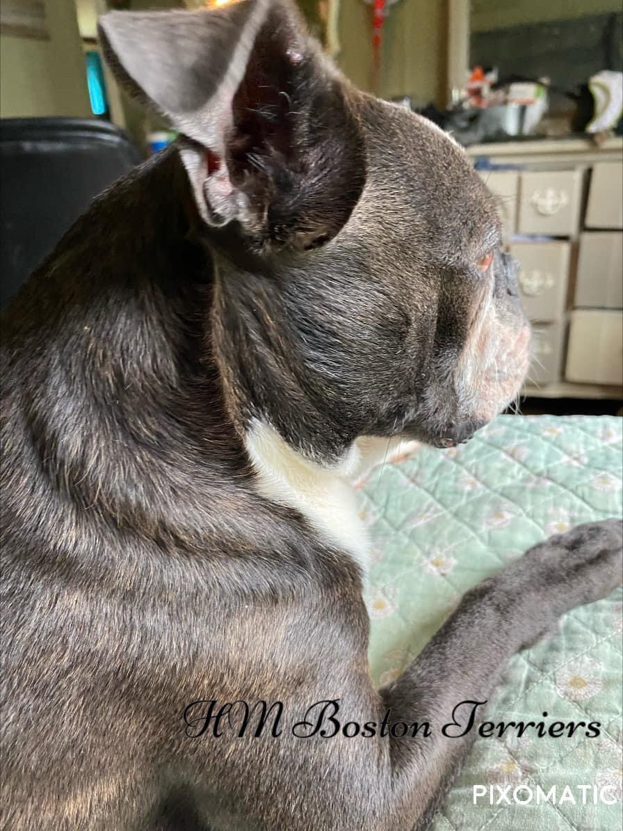 Scarlet is a female Boston Terrier. Carefully selected as a great representative of her breed, Donna decided to make her part of their program. Donna has passed Good Dog’s screening process, which involved a review of their breeding practices, environment, and the mental and physical health of their dogs.