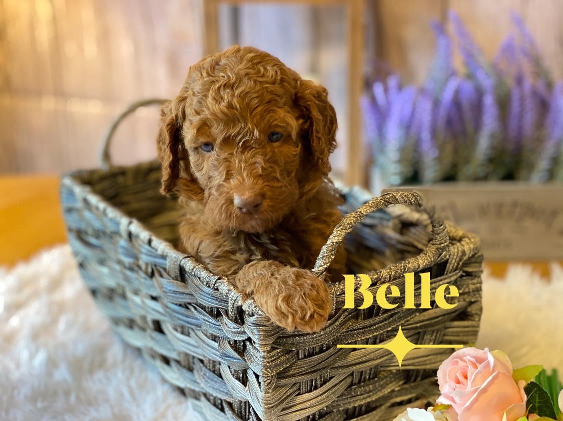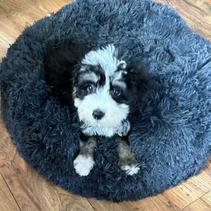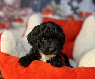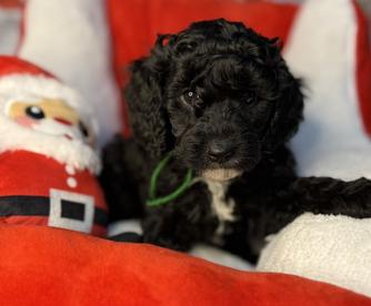 Our Poodle puppies include black and phantom. Goldendoodle puppies include apricot, red, and black. Bernedoodle puppies include black, black and white, and tri-color. Colors will vary depending on the parent dogs.