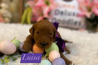 Donna was amazing to work with. She was very responsive as we started our process - offered FaceTime & videos as requested. We selected our furbaby “sight unseen” with great confidence! I was very comfortable with every step of our journey … I HIGHLY recommend Donna’s Deluxe Doodles. I have already referred several friends/ acquaintances. Donna is THE BEST in my opinion. My precious girl came as seen on videos - ( just perfect!!) - and with vaccinations & microchip and all AKC papers along with food for travel ; toys & vitamins ; instructions for good care & future care - truly felt I received our new baby WELL CARED FOR ♥️♥️♥️ We named our precious girl Tallulah. She is so beautiful and healthy! She’s a happy little girl - loves to play & loves to cuddle! She was only 9 weeks but she is 90% potty trained to go outside!!! Tallulah is a beautiful blessing to our family - so grateful to Donna for all her early investment with this precious puppy! Highly recommended DDD to anyone looking for their fur baby! 💞