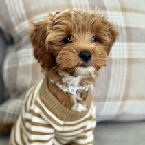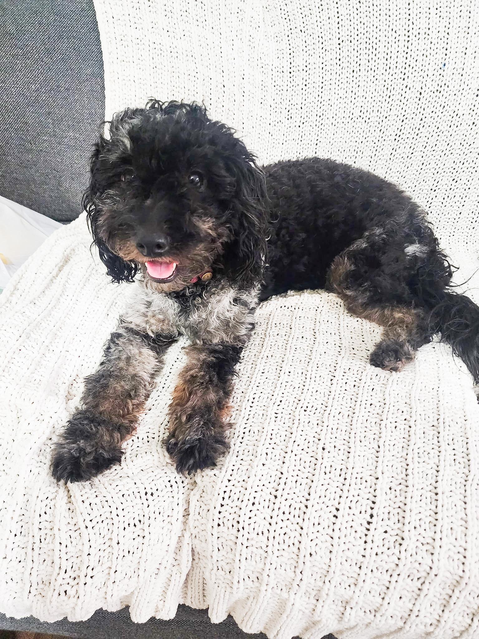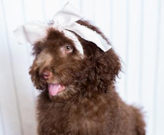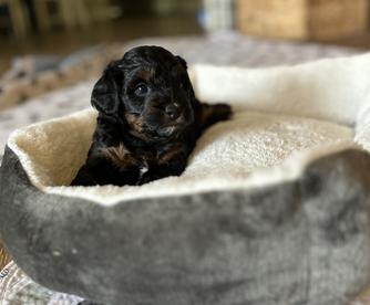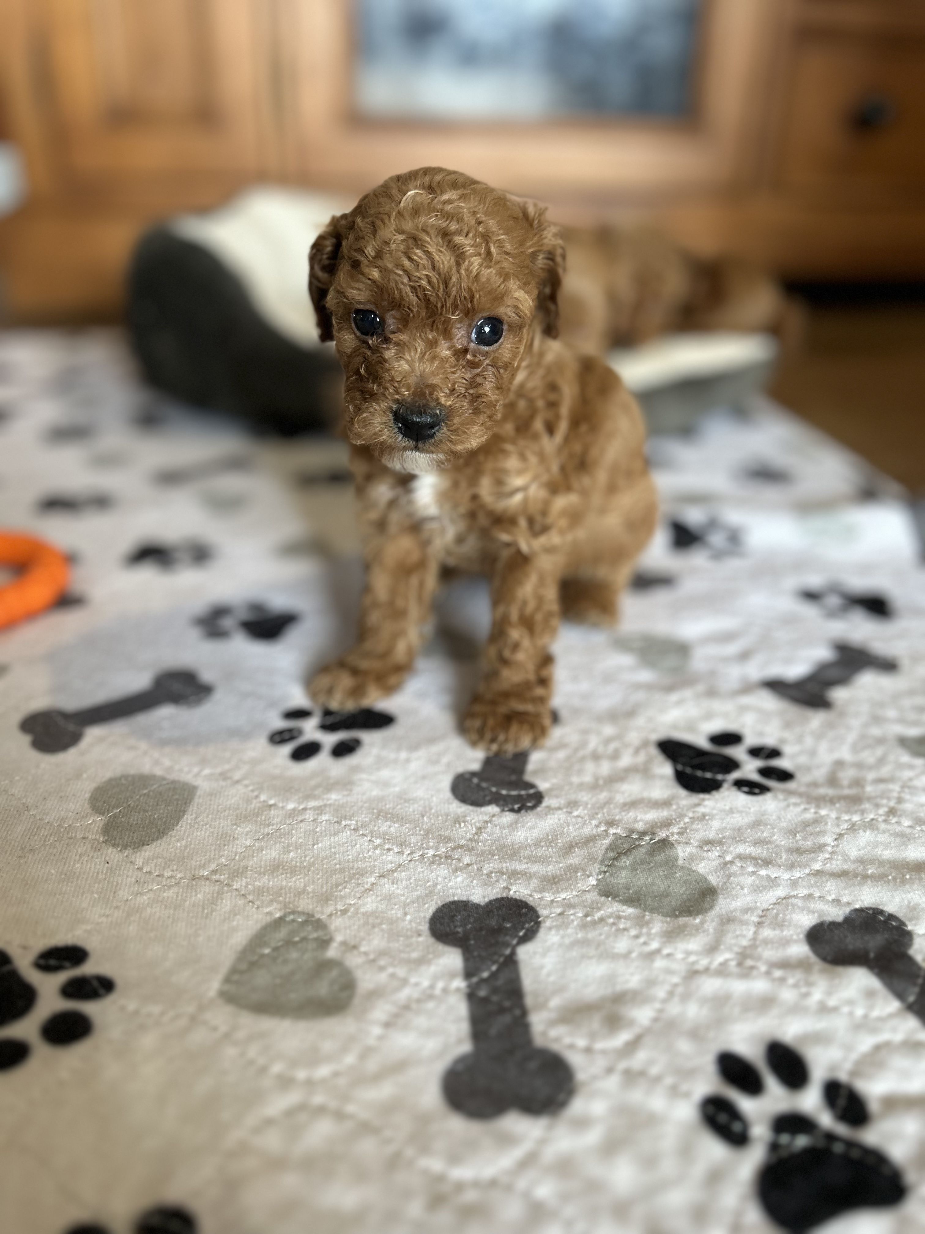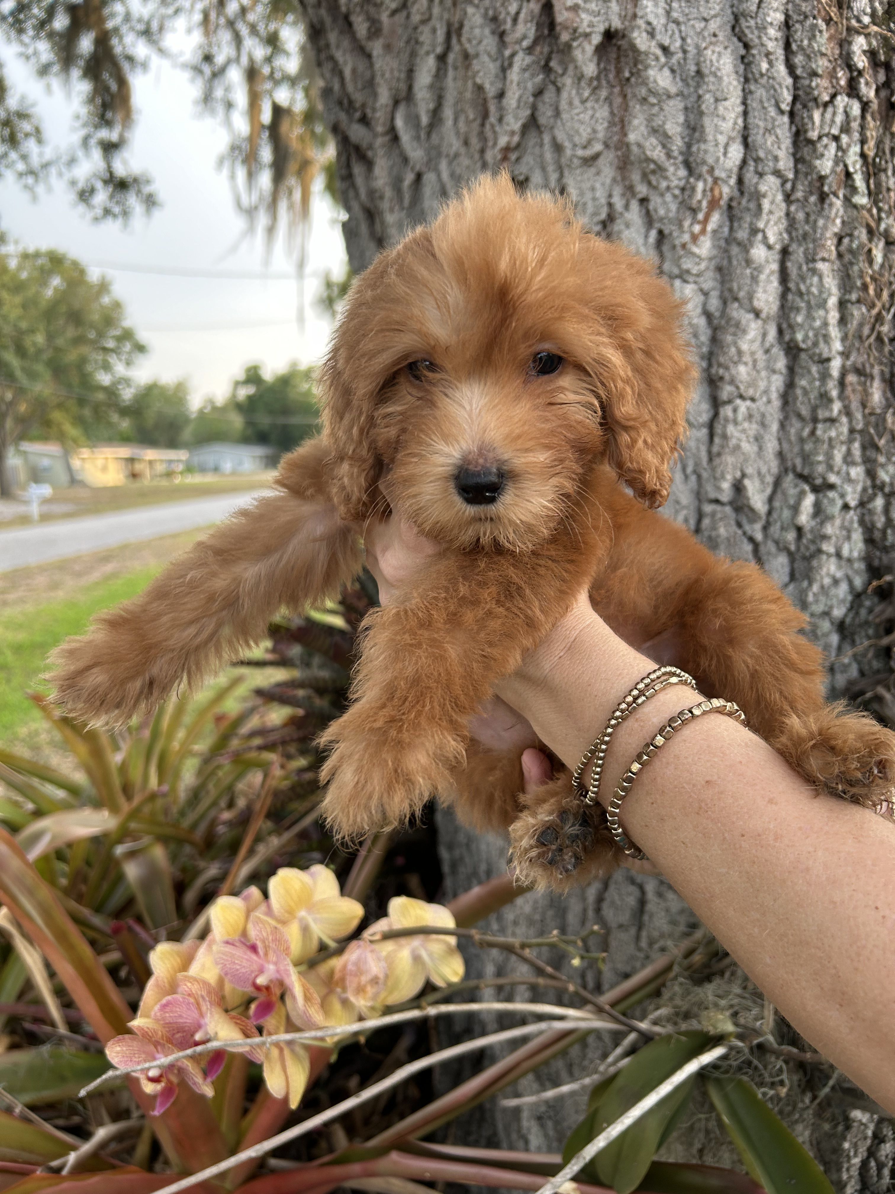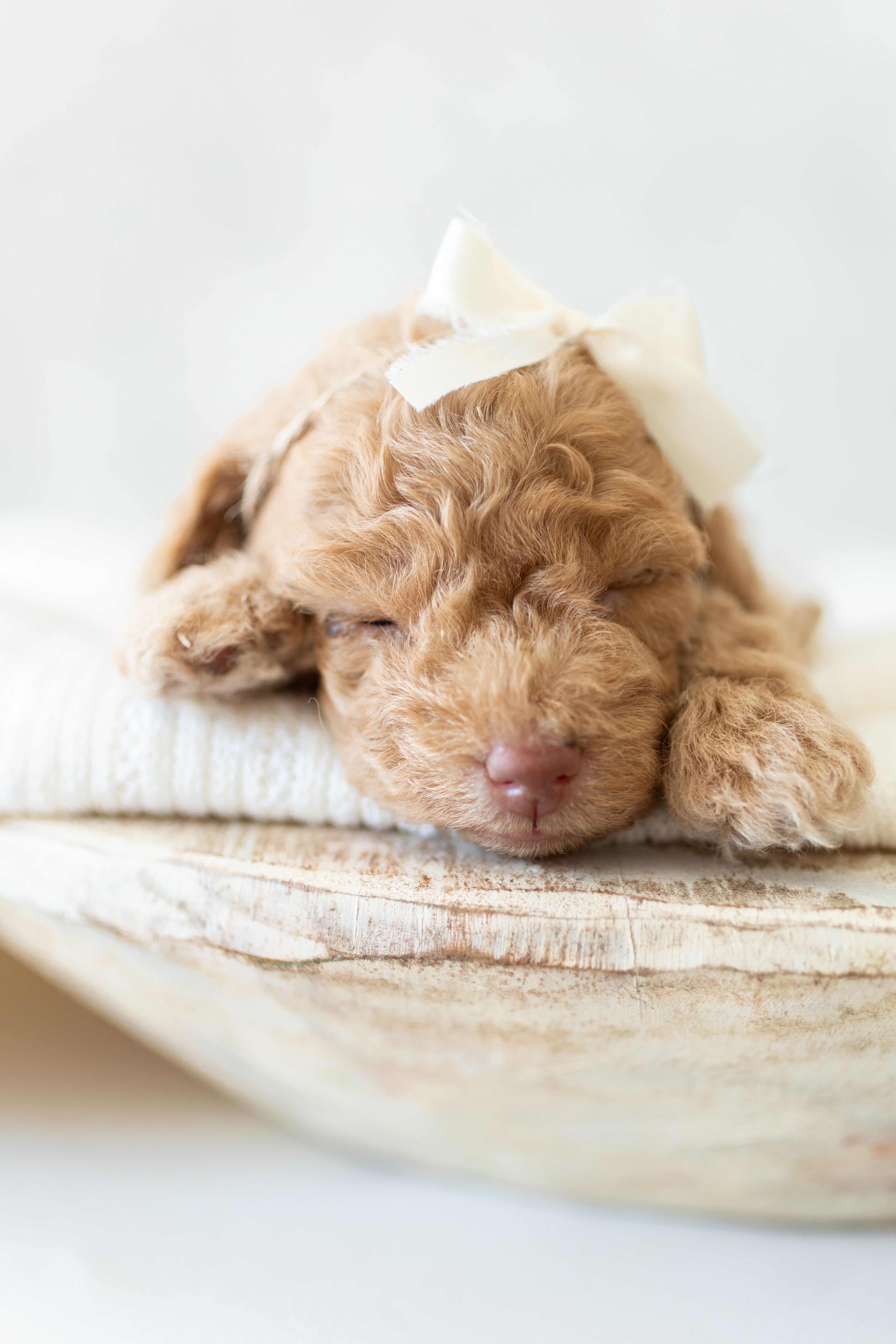 Lucy is the best! She is a 12lb Labradoole with a deep rich red coat that is nearly straight and a thick silky texture. her personality is just amazing! She is a funny girl, loves to cuddle, play, and just be with her humans. She is also super smart and has been an amazing mama to her babies/