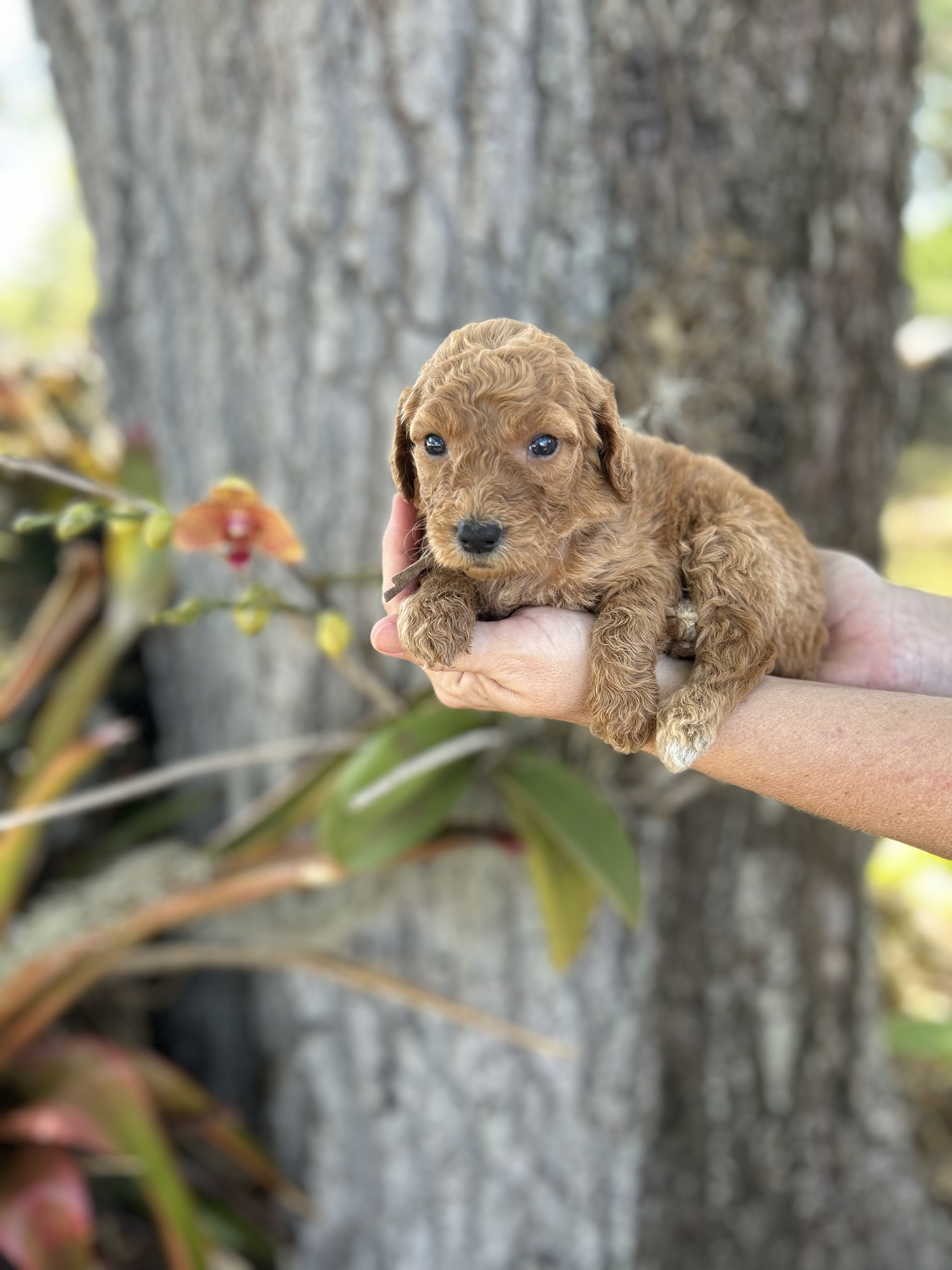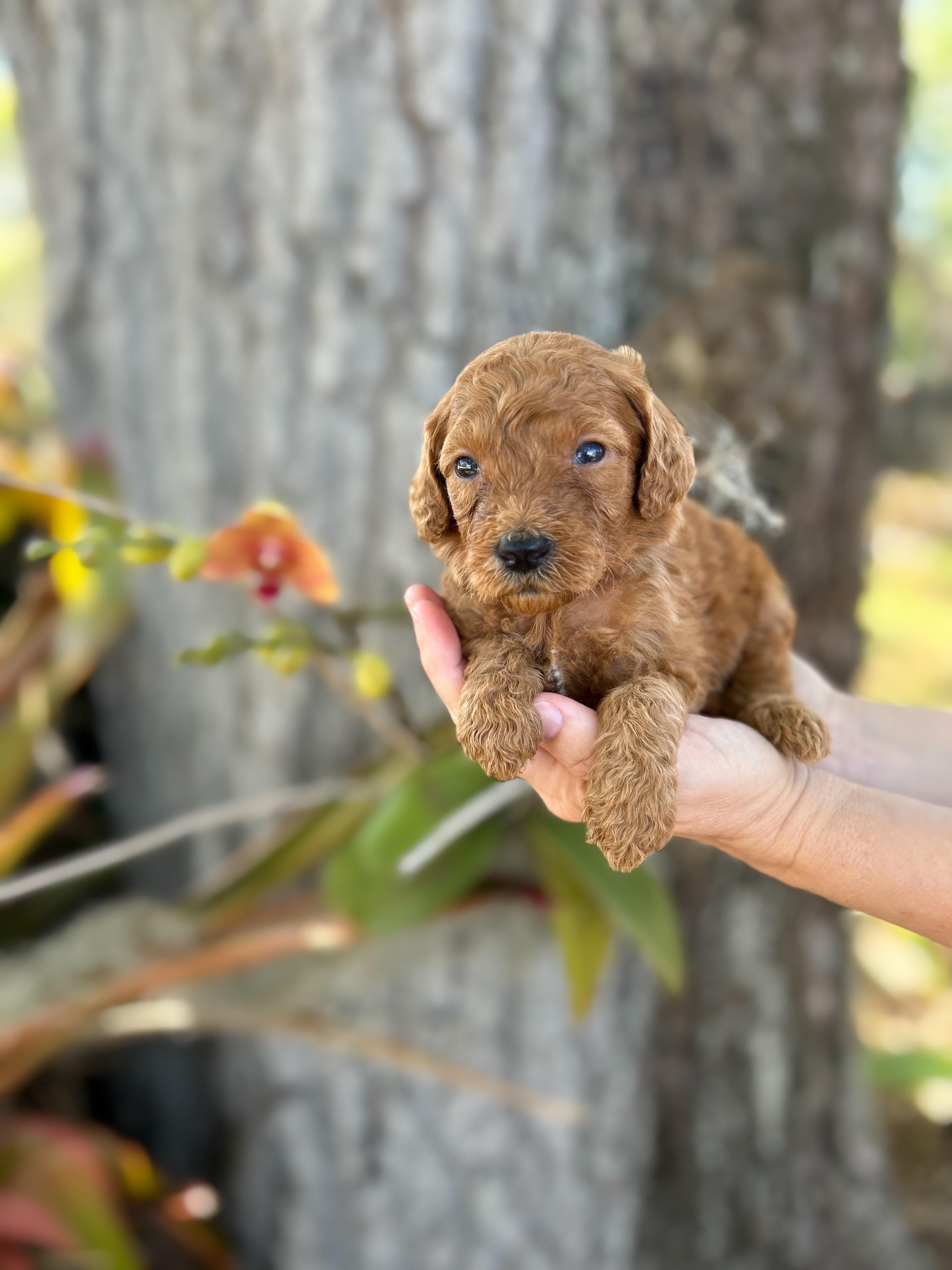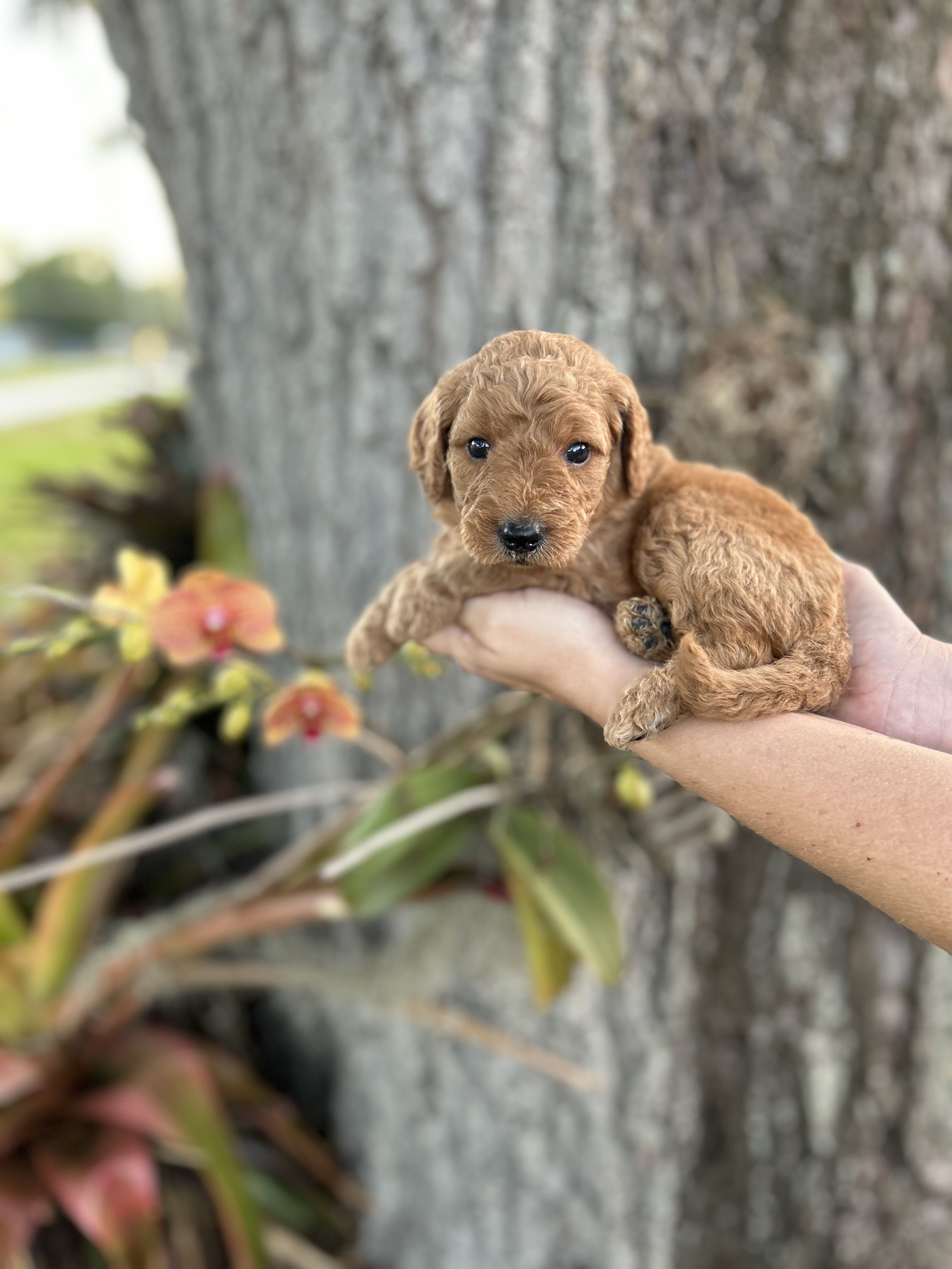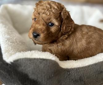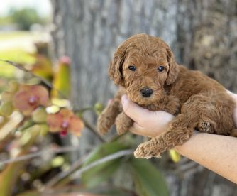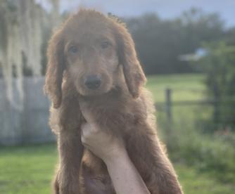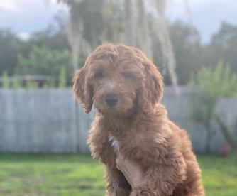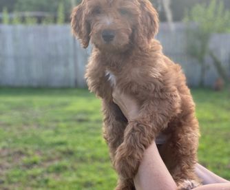 Nala is a gorgeous curly coated red medium doodle. She has an excellent temperament, love the whole family, loves to play and cuddle!