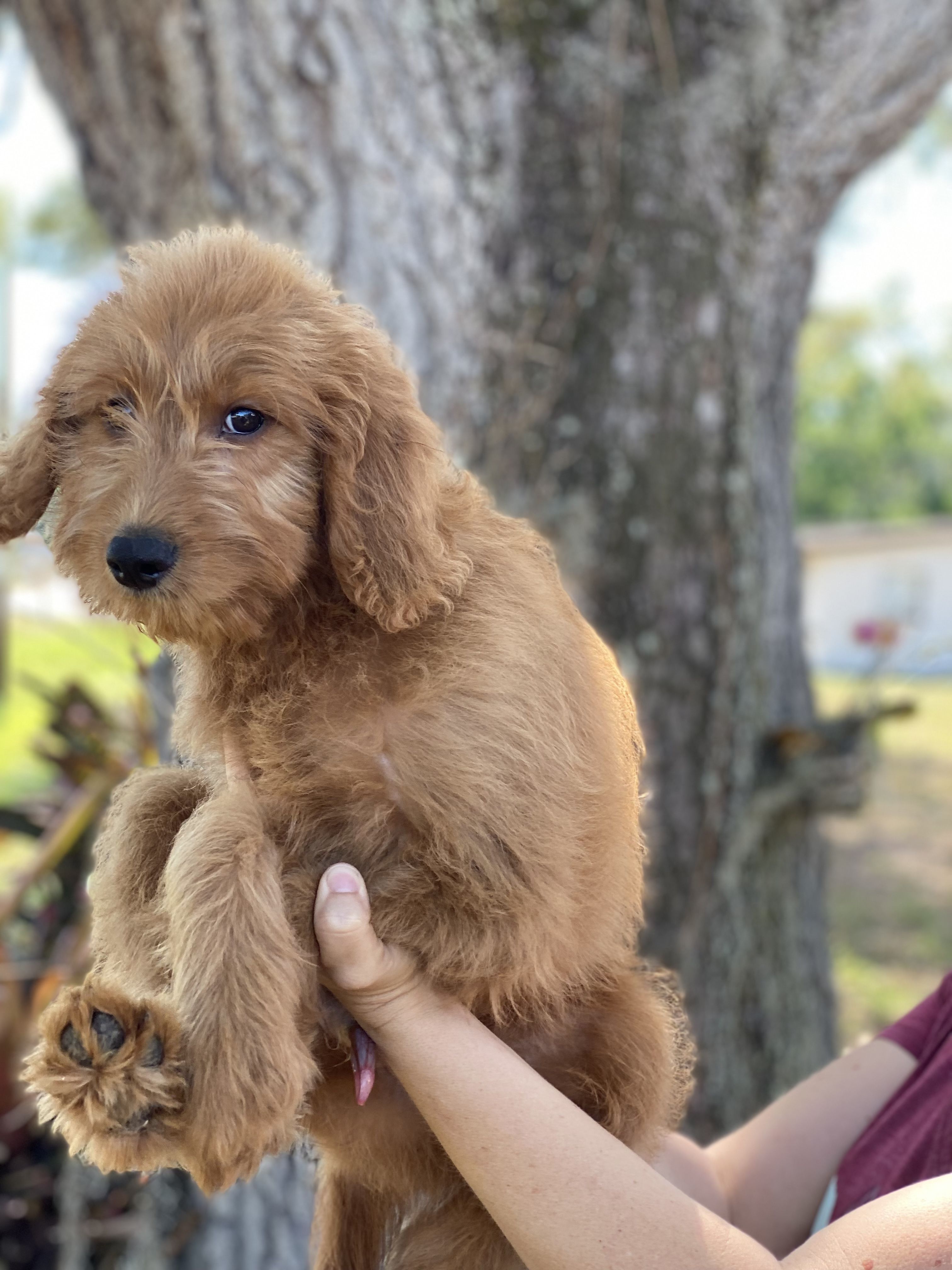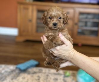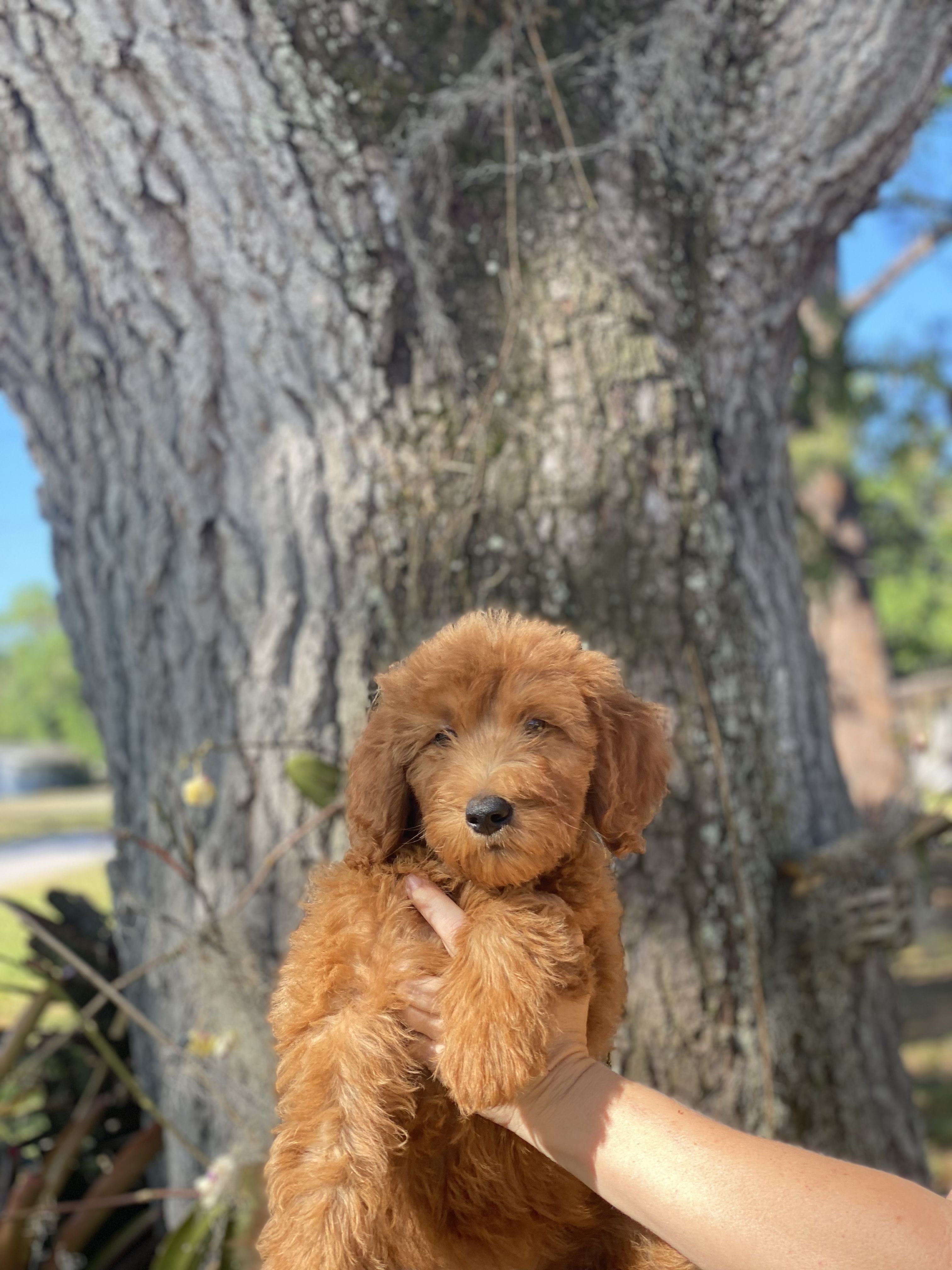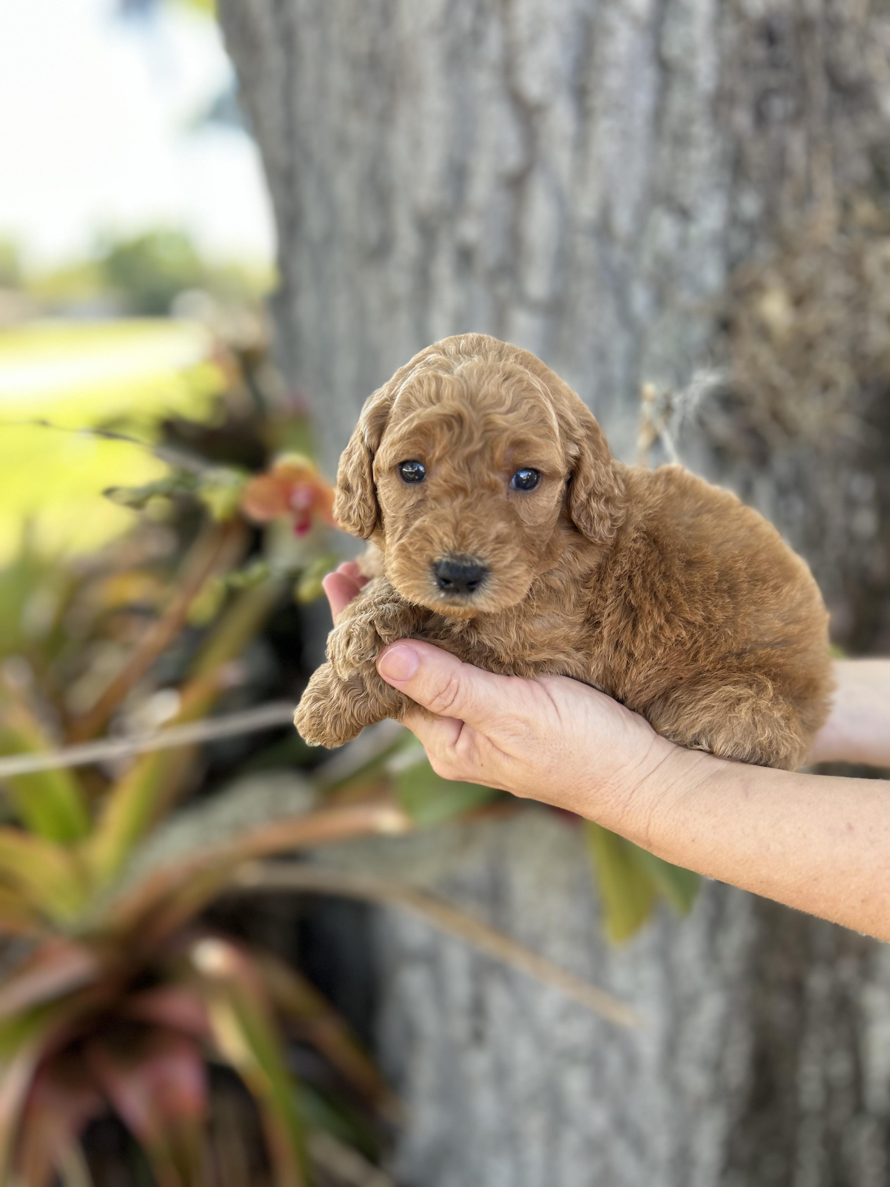 Nala is a gorgeous curly coated red medium doodle. She has an excellent temperament, love the whole family, loves to play and cuddle!