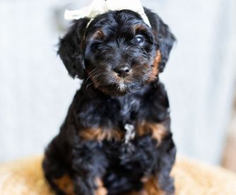 Our Aussiedoodle puppies are mini size. Goldendoodle puppies include petite, miniature, and medium sizes. Labradoodle puppies are miniature size. Sizes will vary depending on the parent dogs.