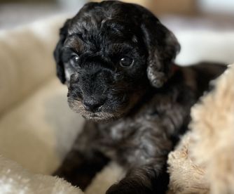 Our Aussiedoodle puppies include brown and white, blue merle, red merle, black and white, and red tri-color. Goldendoodle puppies include cream, apricot, red, chocolate, phantom, merle, and parti. Labradoodle puppies include red, apricot, cream, and cafe. Colors will vary depending on the parent dogs.