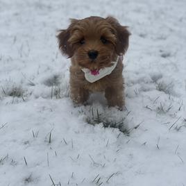 The most family oriented, gentle and affectionate dog you’ll ever meet! Heather is everything I’ve ever dreamed about from her beautiful chunky ‘teddy bear’ build to her ultra human oriented temperament. This girl loves to cuddle up right next to her people and really thinks she is human. She is often called our “forever puppy” because she still has her gorgeous puppy face, and never grew out of it. She’s happy go lucky and never complains. Her easy going and willing to please demeanor shows up in her babies, beyond a doubt! Heather is also health tested and cleared to be certain no hereditary issues pass on to her offspring and each of her puppies is guaranteed on a one year health guarantee. Heather has no social/separation anxiety and is always thrilled to be apart of family activities, from walks in town to our favorite café to a day at the beach! She is a VERY popular girl and is always greeted with so much love and pets! She is much more human oriented/focused than she is dog oriented, which is a very nice quality of hers. She loves being a mom and is very attentive to her babies needs. She produces the most beautiful babies in every way with a few of them going on to do service and emotional companion work for their families. Cavapoos don’t usually like the water, but this girl has no fear at all. She loves to swim and retrieve sticks. She passes down her ideal temperament along side her gorgeous looks! We really couldn’t love this girl more!