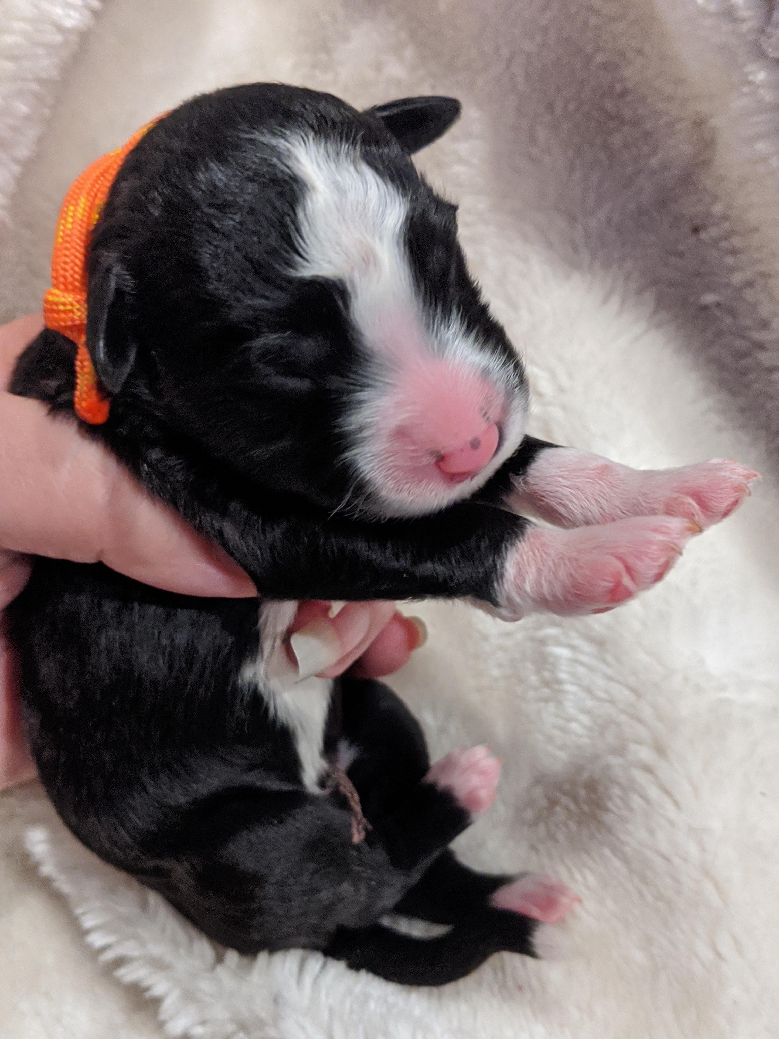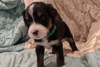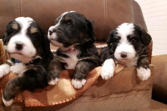 Our Poodle puppies include parti and phantom. Aussiedoodle puppies include brown and white, blue merle, red merle, black and white, and black tri-color. Bernedoodle puppies include sable and tri-color. Colors will vary depending on the parent dogs.