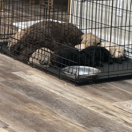 Our goal is for our puppies to be crate trained, potty trained, and basic puppy trained when you take them home. This ensures less stress for both humans and puppies, and creates a better bond.