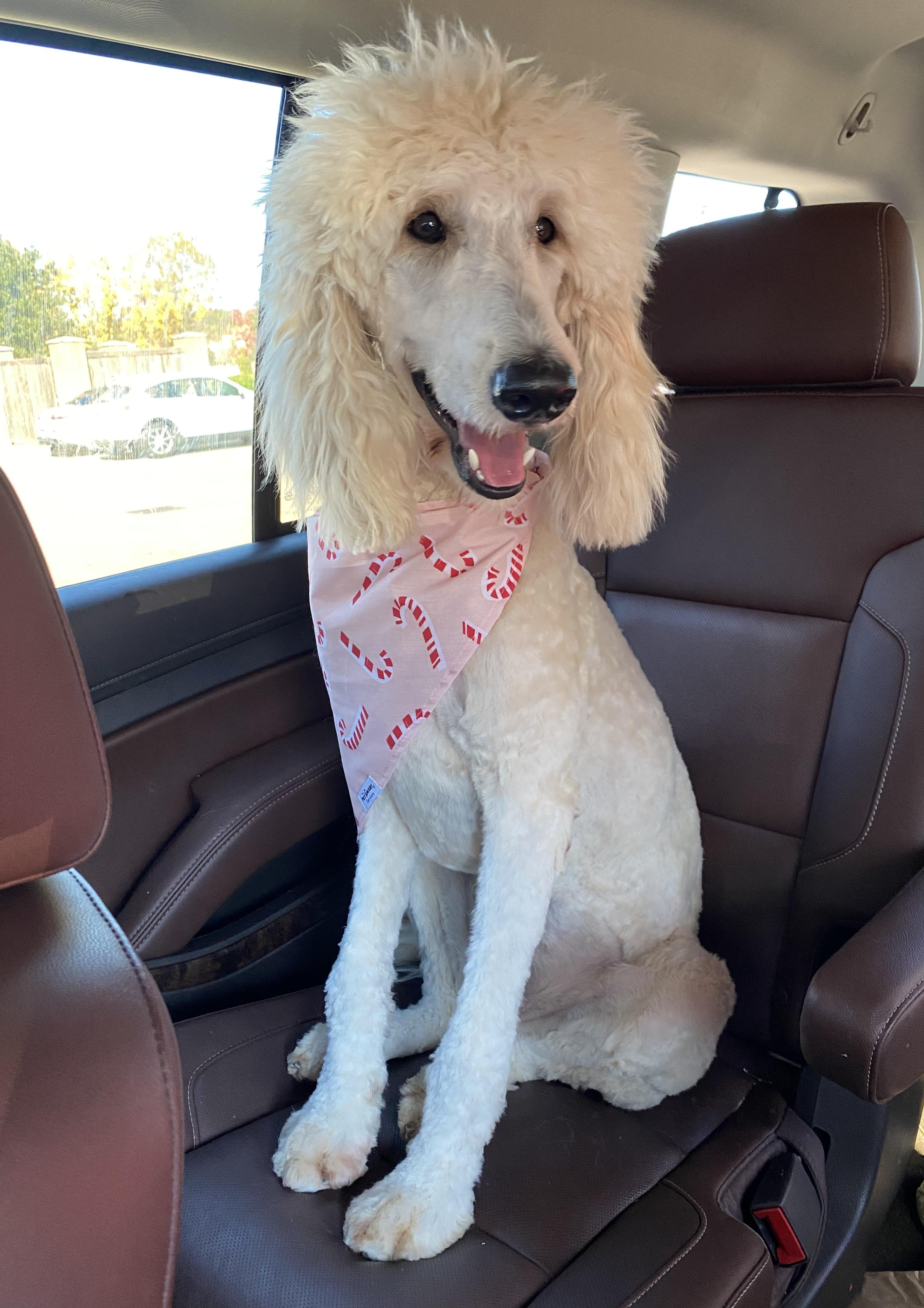 Daisy is an F1bb Goldendoodle with a soft wavy cream coat. She is very calm and always eager to please us and our children. She loves playing fetch, swimming, and sun bathing. Her favorite activity is snuggling on the couch or in a chair while watching TV with her family. Daisy is hypo-allergenic and non-shedding.