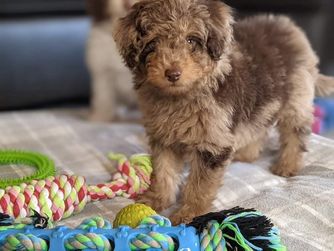 We had an amazing experience adopting our Aussiedoodle puppy, Loki, from Susan. She was incredibly helpful and knowledgeable throughout the entire process, providing us with all the information we needed to make an informed decision. Loki is a bundle of joy and has quickly become a beloved member of our family. We're so grateful to Susan for giving us the opportunity to bring this wonderful pup into our home.