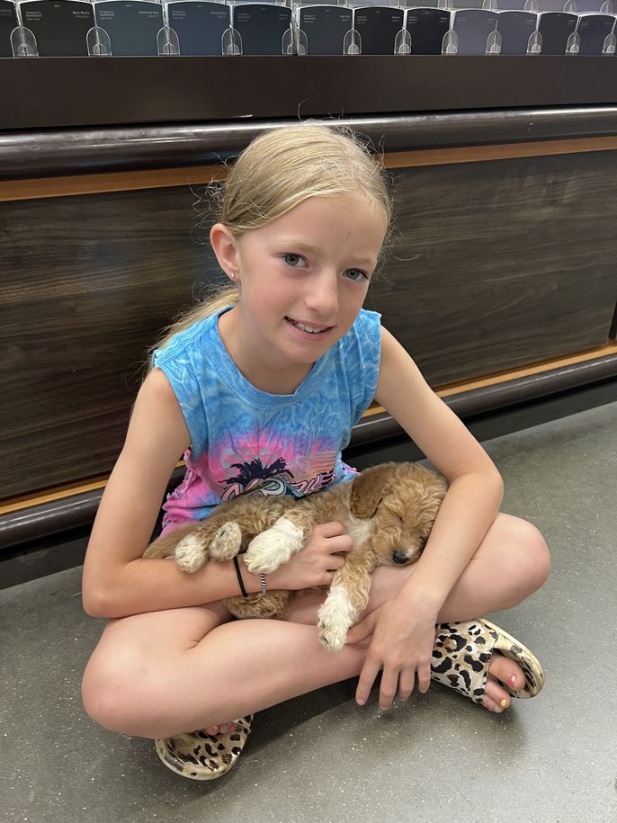 Harper is a female Labradoodle. Carefully selected as a great representative of her breed, Ashley decided to make her part of their program. Ashley has passed Good Dog’s screening process, which involved a review of their breeding practices, environment, and the mental and physical health of their dogs.