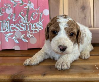 I'm Ashley F., the breeder behind Doodle Darlings located in English, IN. We’re devoted to ensuring there are healthy puppies for others to enjoy and we do so by responsibly growing this incredible breed. We provide families with adorable, healthy, and loving new furry family members! We make sure our pups are socialized and ready to cuddle the moment they get into your arms.