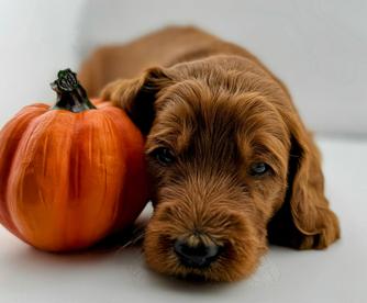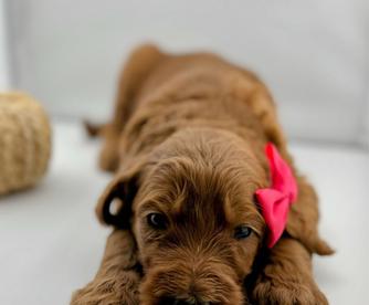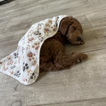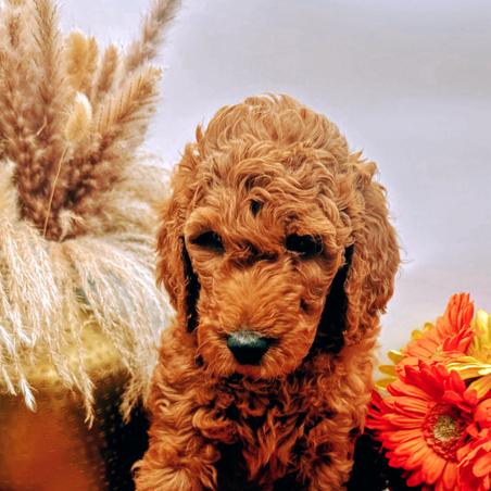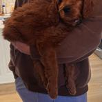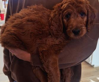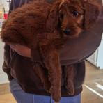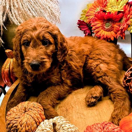 This beauty is sweet “Mayflower”! She is a 7 week old gorgeous red F1B standard size female Goldendoodle with a luxurious wavy red coat. Her personality is incredibly endearing and she is the perfect blend of play & snuggle! She is ready to go home with her furever family on 11/24!