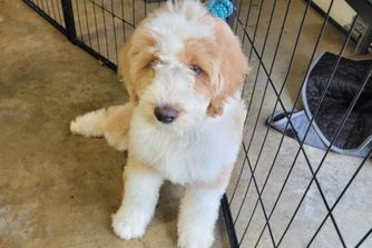 Our Goldendoodle puppies include cream, apricot, black, phantom, merle, and parti. Double Doodle puppies include phantom, light golden, golden, dark golden, cafe au lait, brown, black, apricot, and cream. Colors will vary depending on the parent dogs.