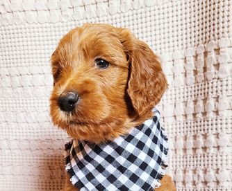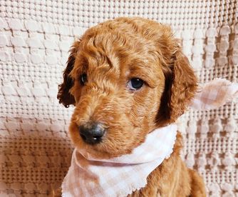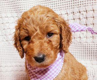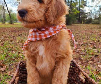 Scout is a beautiful red and cream F1 Goldendoodle. She is very sweet and mild mannered.