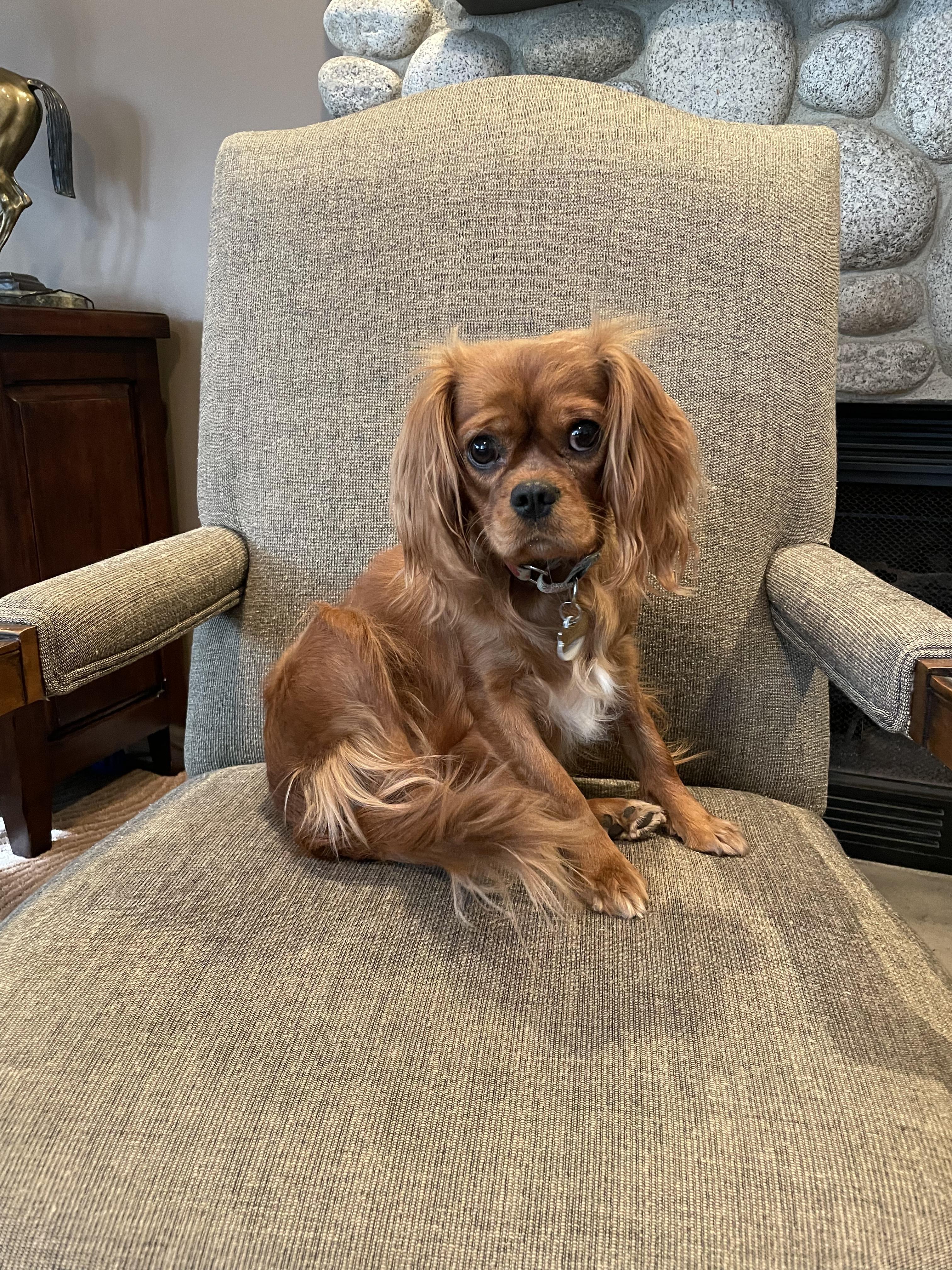 Ruby is a female Cavalier King Charles Spaniel. Carefully selected as a great representative of her breed, Sarah decided to make her part of their program. Sarah has passed Good Dog’s screening process, which involved a review of their breeding practices, environment, and the mental and physical health of their dogs.