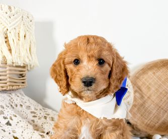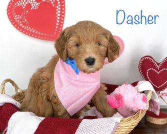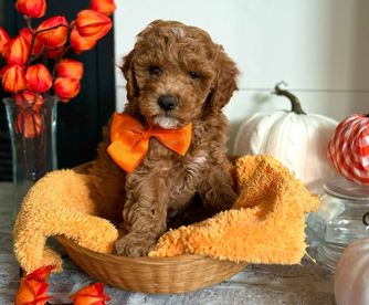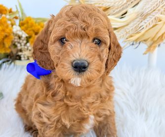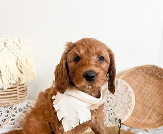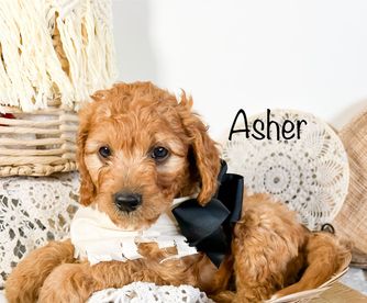 Born in Idaho, Skippers mom was a standard golden retriever 60 lb, dad was a 17 Moyen poodle. This makes her an f1 goldendoodle. She has a wavy coat. Her favorite game is ball and fetch! She is an amazing family pet and mama to puppies.