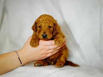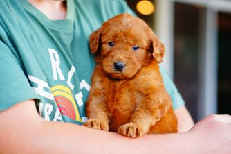 Our Goldendoodle puppies are red. Colors will vary depending on the parent dogs.