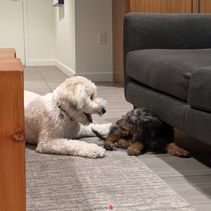 We adore our puppy Cami. Lubov did a good job of desensitizing the puppies to baths, household sounds, and other experiences. Crate training was a breeze. Lubov also helped us select our puppy based on personality, as best as possible given the young age. Cami came to us well adjusted and full of energy, and is doing really well on her training. Nearly fearless and extremely curious, she runs to check out anything new and loves spending time with dogs of all sizes. A quick learner and thankfully quite food motivated. I did an Embark DNA test as well for Cami and everything came back exactly as expected, just like the parents’ Embark results. I would recommend knowing the questions you want to ask as Lubov can answer anything you need but may not be able to provide all information if it is unasked. I'm grateful Lubov drove all the way to Seattle to help with the handoff. Thank you! If anybody wants to plan puppy dates in Seattle (especially other owners from the Tavi and Gypsy litter), you can reach me at (901) 593-2195.