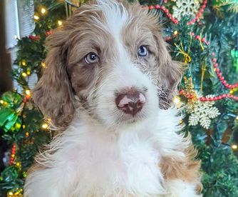 I'm Heather W., the breeder behind Doodle Mountain located in Shiloh, GA. Our dogs are genetically tested, and health is a priority! All of the puppies are kept in my home and treated as family. They are loved and cared for from day one. My family loves each puppy, and we give them tons of affection. The puppies will be familiar with children and household noises.