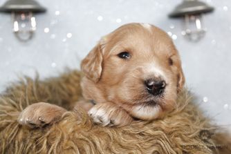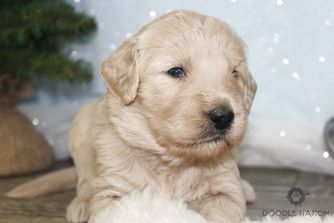 Butter is a female Goldendoodle. Carefully selected as a great representative of her breed, Flo decided to make her part of their program. Flo has passed Good Dog’s screening process, which involved a review of their breeding practices, environment, and the mental and physical health of their dogs.