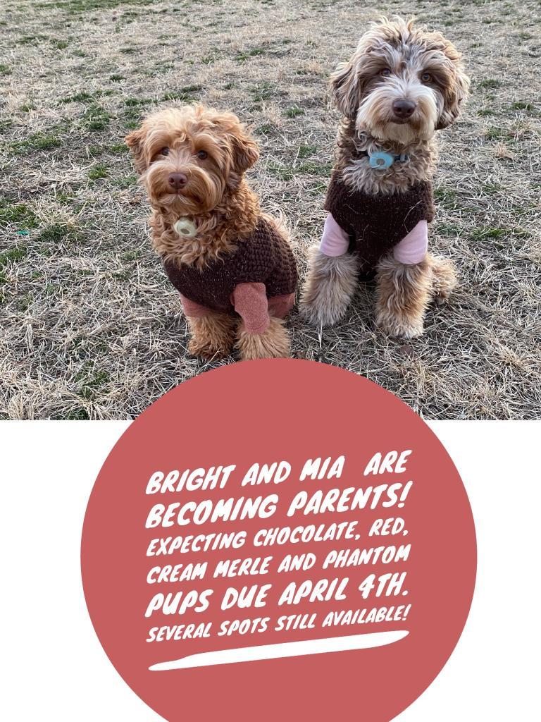 Our puppies include apricot, red, chocolate, phantom, and merle. Colors will vary depending on the parent dogs.
