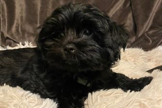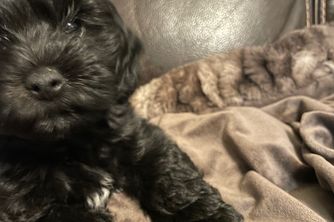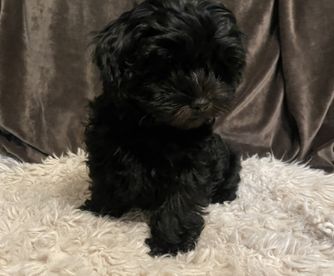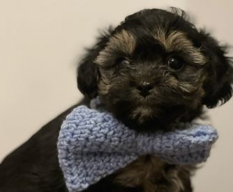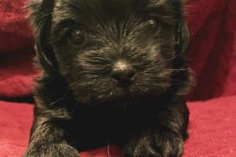 Our Goldendoodle puppies include cream, apricot, and red. Shorkie puppies include black and tan, black, and black and white. Colors will vary depending on the parent dogs.