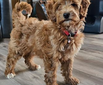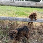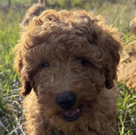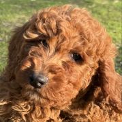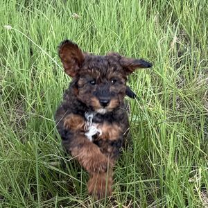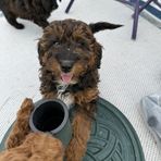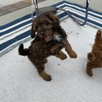 Cici is a Phantom Toy Aussiedoodle. She is chocolate brown with copper highlights. She has a loving and loyal temperament.