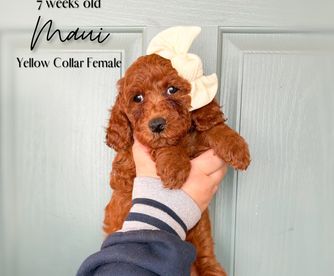 Our puppies are red. Colors will vary depending on the parent dogs.