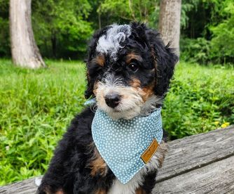 Our Goldendoodle puppies include petite and miniature sizes. Bernedoodle puppies are mini size. Sizes will vary depending on the parent dogs.