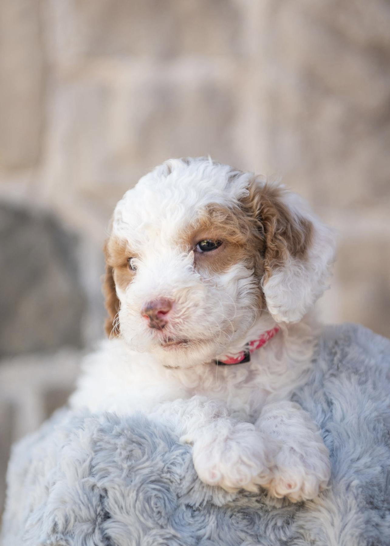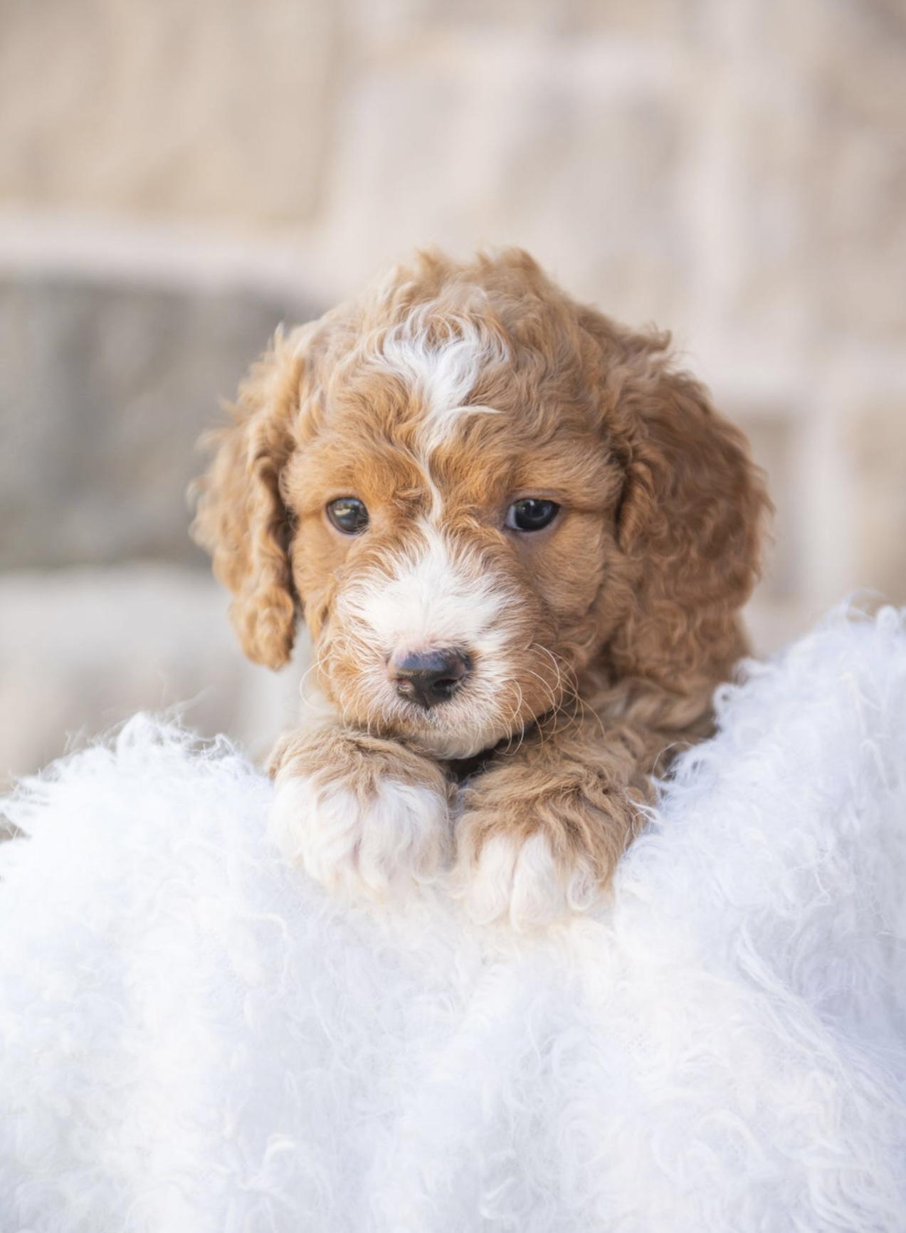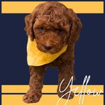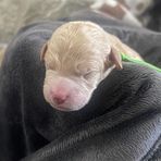 Our beautiful multigen, mini goldendoodles come in both the sought after deep red or apricot tuxedo pattern of their father, the loveable Leo, or the white-spotted parti pattern of their mother, Lola. Both parents are at least 75% poodle and (++). They will produce puppies with non-shedding, hypoallergenic coats. Puppies are estimated to weigh between 12-22lbs. All our puppies are examined and health tested by a vet before going to their forever homes. They are microchipped, current on all shots, dewormed, ENS neurological training, socialized, desensitized and kennel trained. They come with a 1 yr. genetic illness guarantee (guarantee puppies will not inherit 2 copies of a recessive inherit gene including DM, NEwS, prcde-PRA, vWD1, ichthyosis, S.LC, T, and NCLS. Also CDDY "short leg. Leo & Leia both carry copies of the (FF) furnishings gene, which means they will always produce puppies with an adorable, fluffy, teddy bear face. They are both very intelligent and have a sweet disposition. We will transport puppies as needed, fees are dependent on location. See more of the puppies on Instagram at @doodle_puppy_parti 🐾🐾🐾