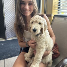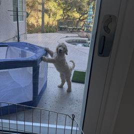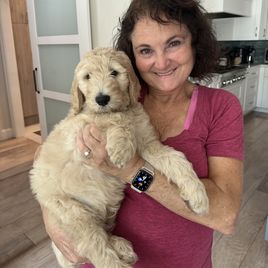 My experience with Doodle Time was excellent. Beckey was very responsive and went above and beyond with customer service. Beckey offered to fly with our puppy from Austin Texas to Sacramento, Ca. Because I just had shoulder surgery. She spent her whole day delivering our puppy. He’s been with us for 2 weeks now and he is really settling in. He was trained how to go out a doggy door when he arrived so he was able to use ours right away. He’s very sweet and smart. We showed him how to ring the bell on the door so he could go potty. He picked it up right away.
