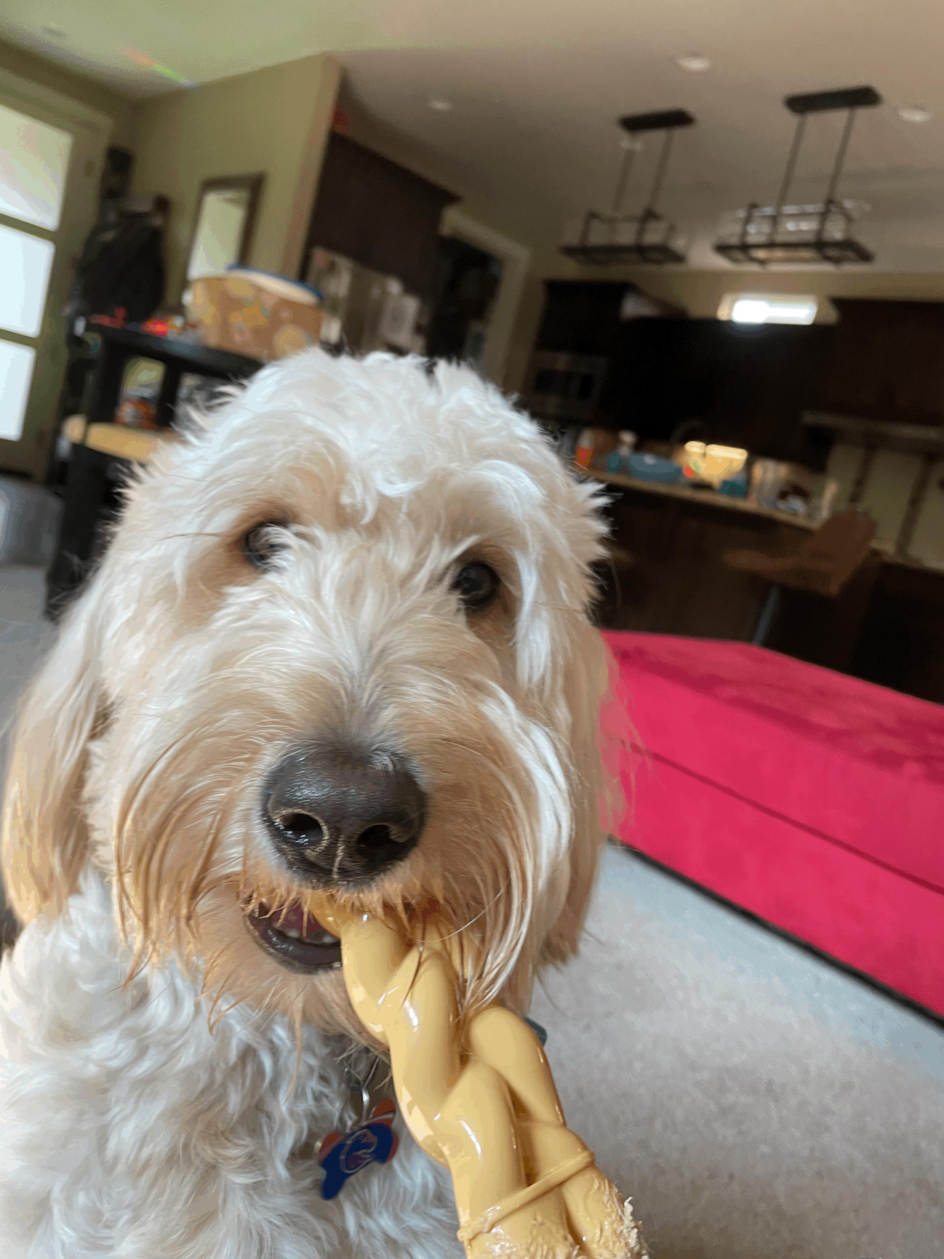 Riley is a female Goldendoodle. Carefully selected as a great representative of her breed, John decided to make her part of their program. John has passed Good Dog’s screening process, which involved a review of their breeding practices, environment, and the mental and physical health of their dogs.