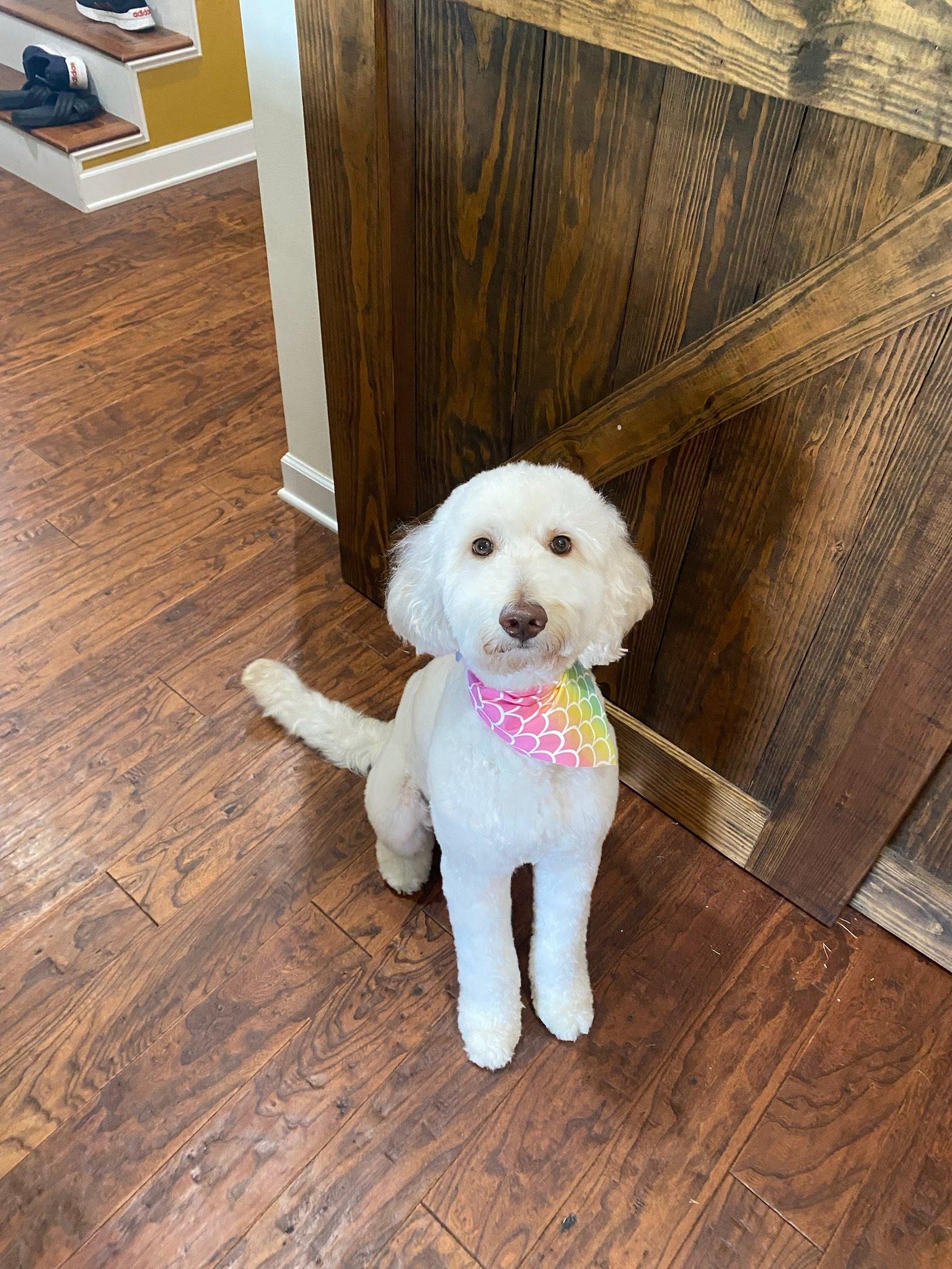 Ryder is a male Goldendoodle. Carefully selected as a great representative of his breed, Jen decided to make him part of their program. Jen has passed Good Dog’s screening process, which involved a review of their breeding practices, environment, and the mental and physical health of their dogs.