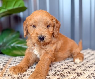 Ruby is a female Goldendoodle. Carefully selected as a great representative of her breed, Jen decided to make her part of their program. Jen has passed Good Dog’s screening process, which involved a review of their breeding practices, environment, and the mental and physical health of their dogs.