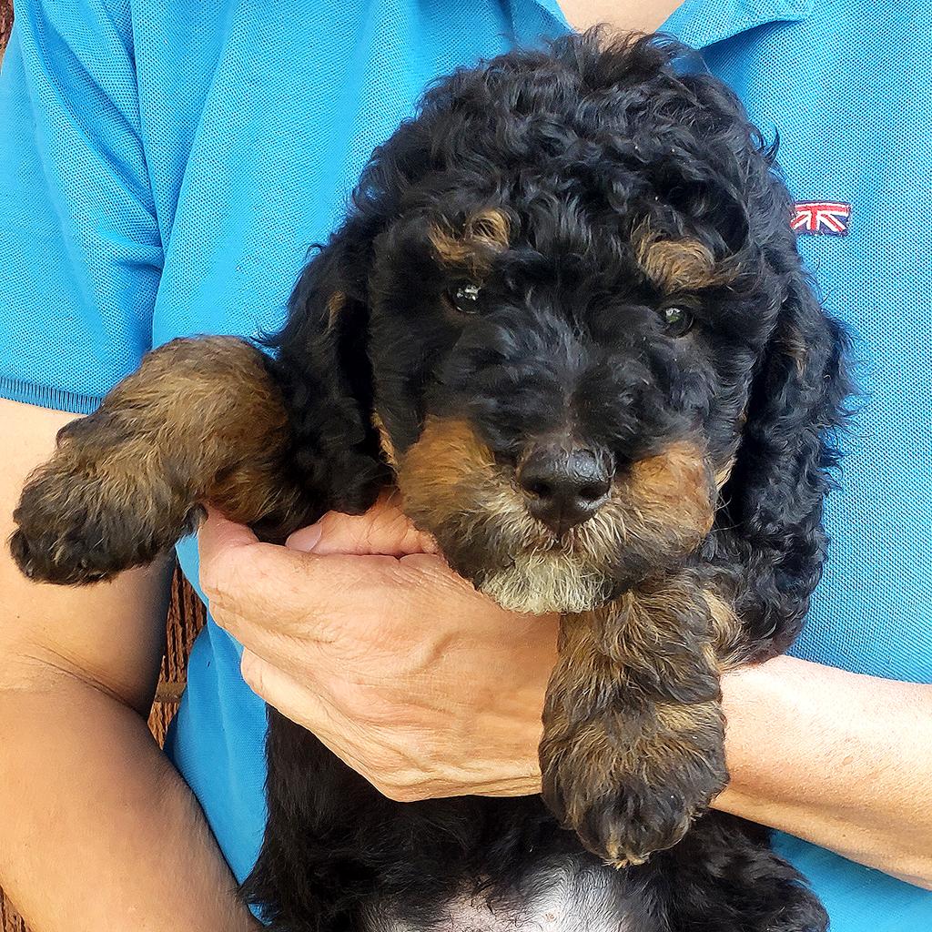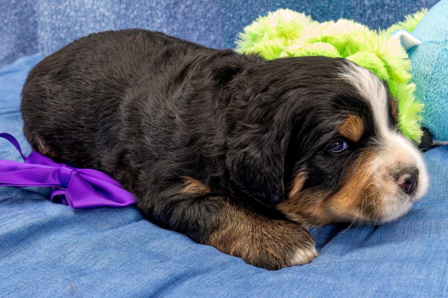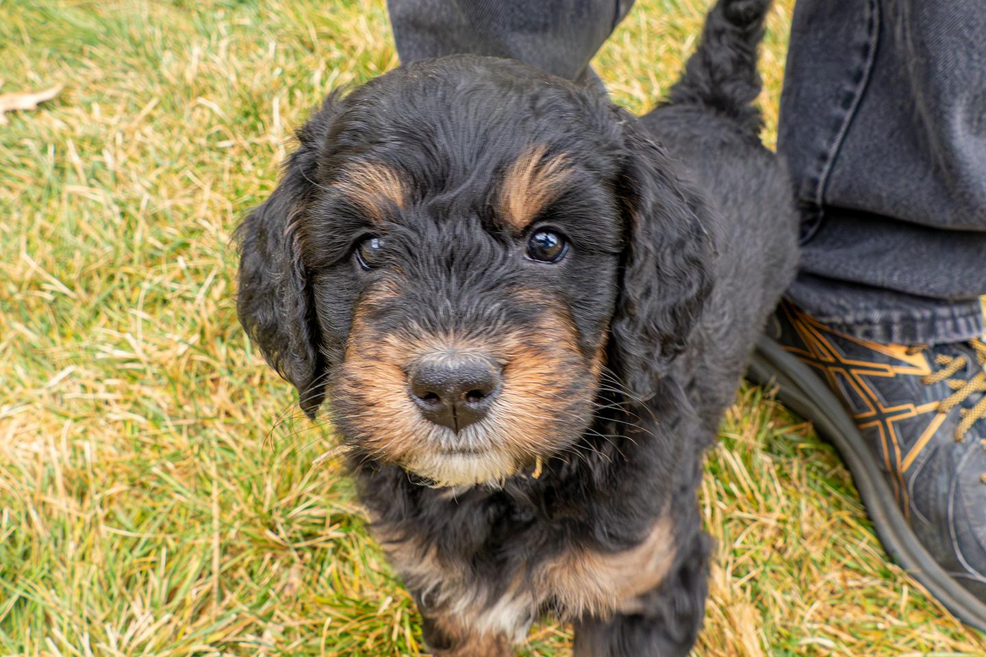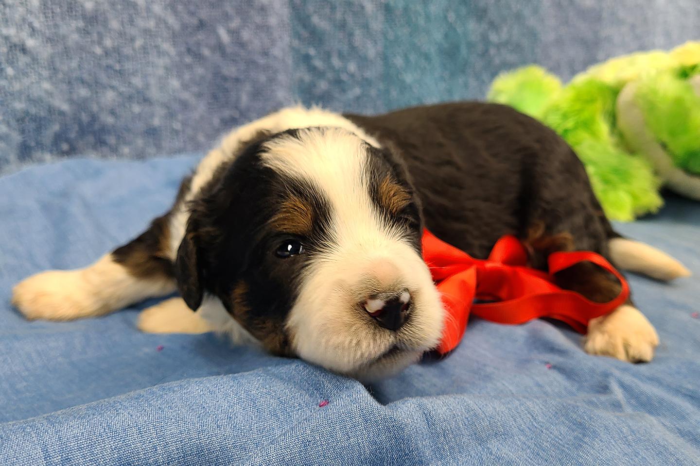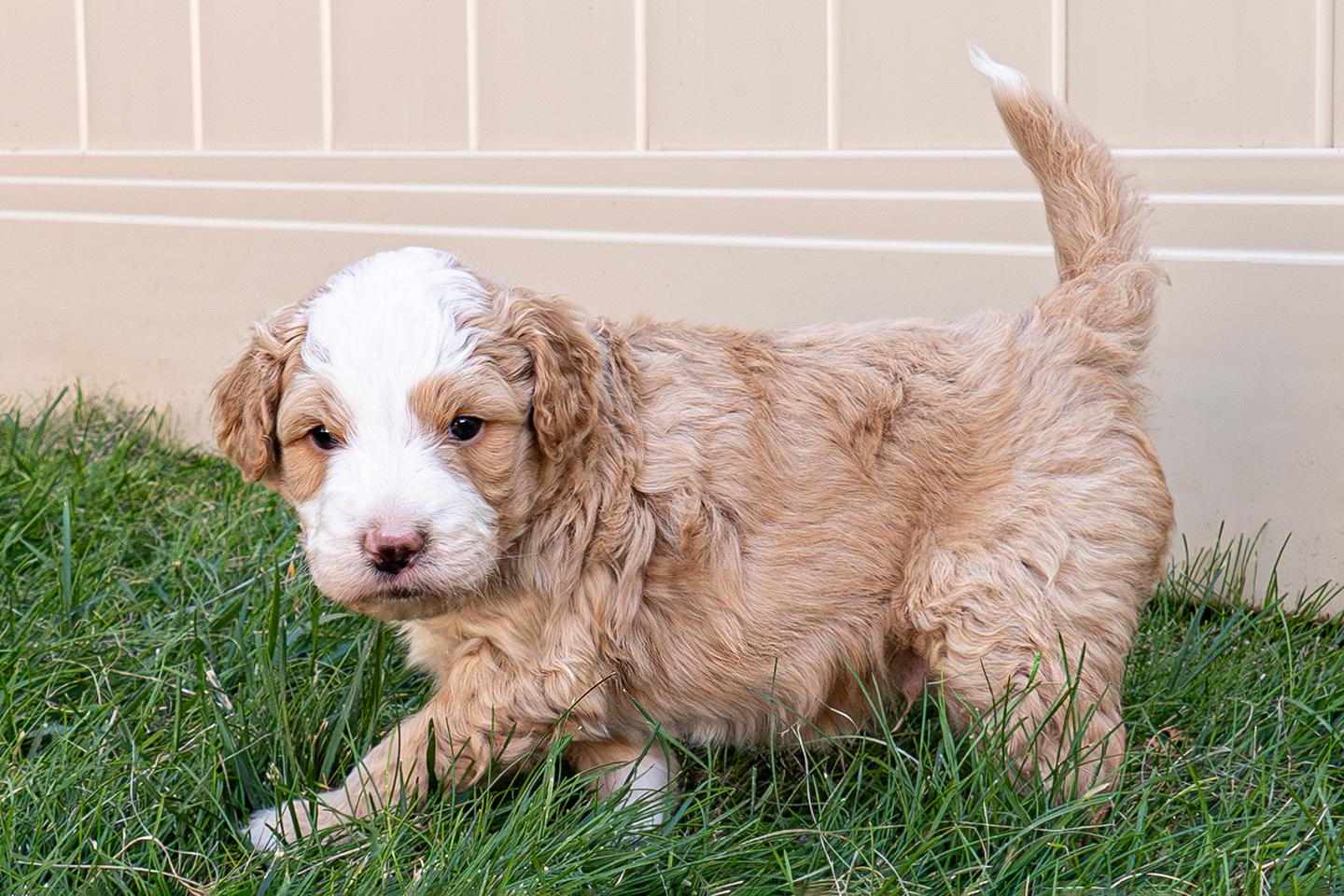 Our Goldendoodle puppies include cream, apricot, red, black, merle, and parti. Bernedoodle puppies include sable, black and white, tri-color, phantom, and merle. Colors will vary depending on the parent dogs.