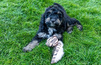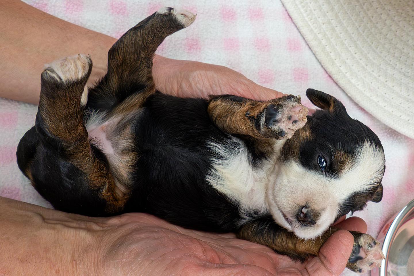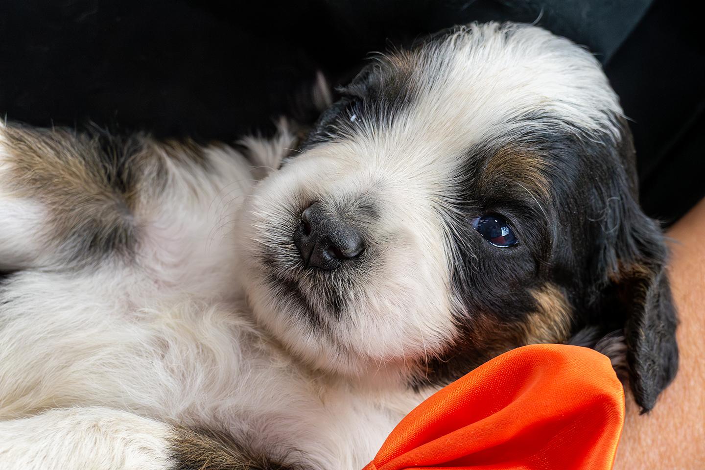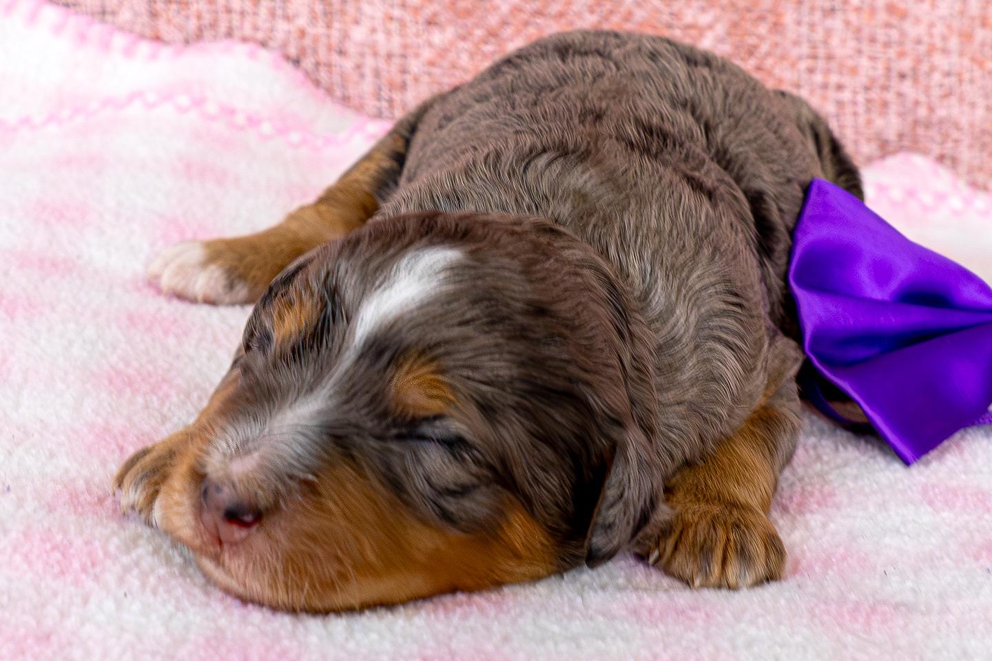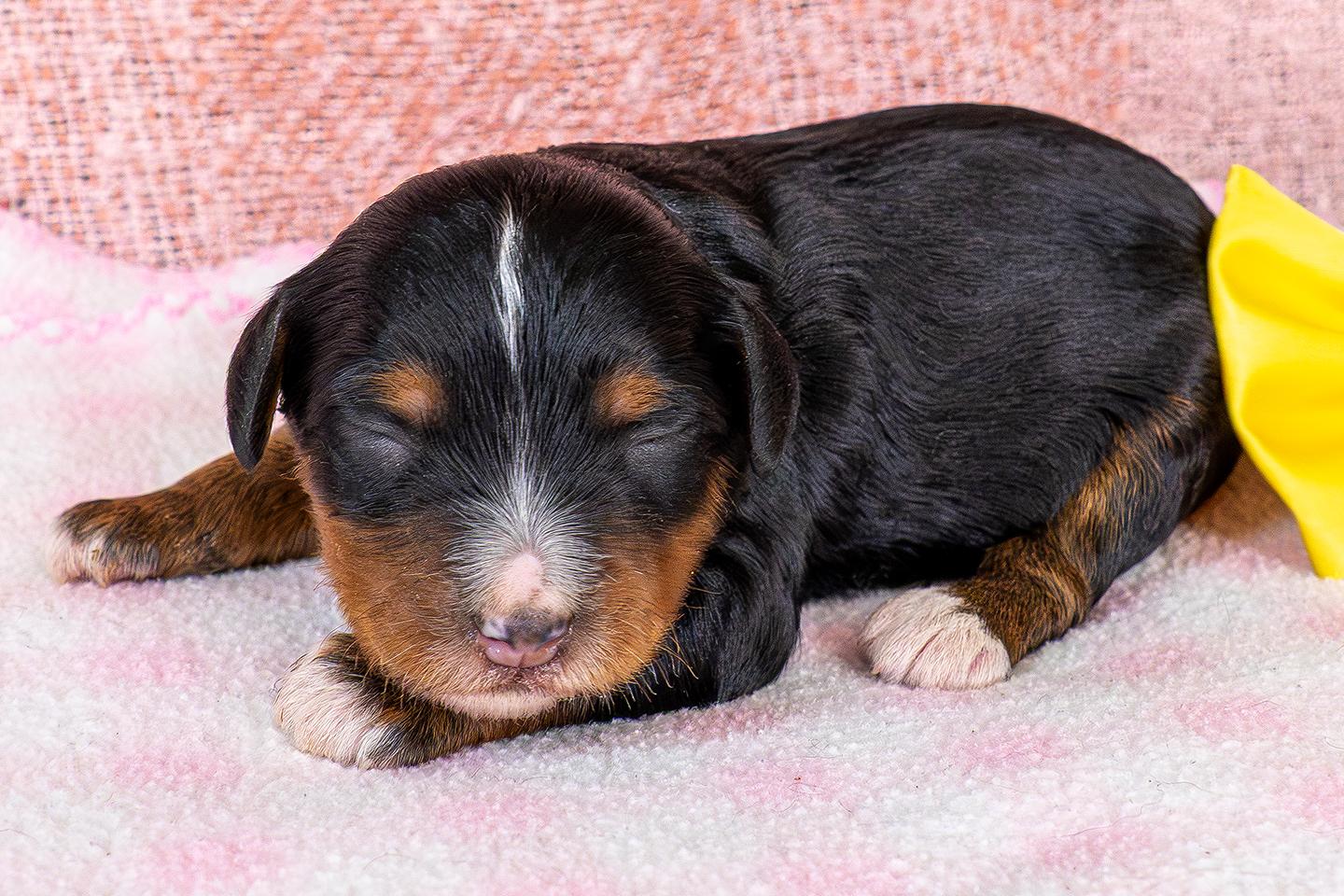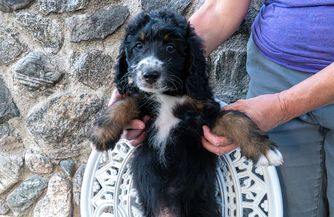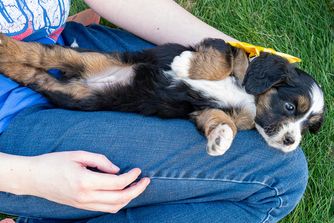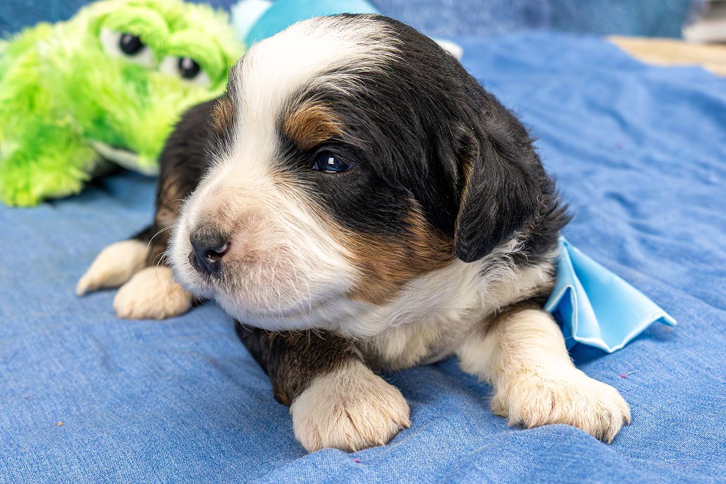 Our Goldendoodle puppies include cream, apricot, red, black, merle, and parti. Bernedoodle puppies include sable, black and white, tri-color, phantom, and merle. Colors will vary depending on the parent dogs.
