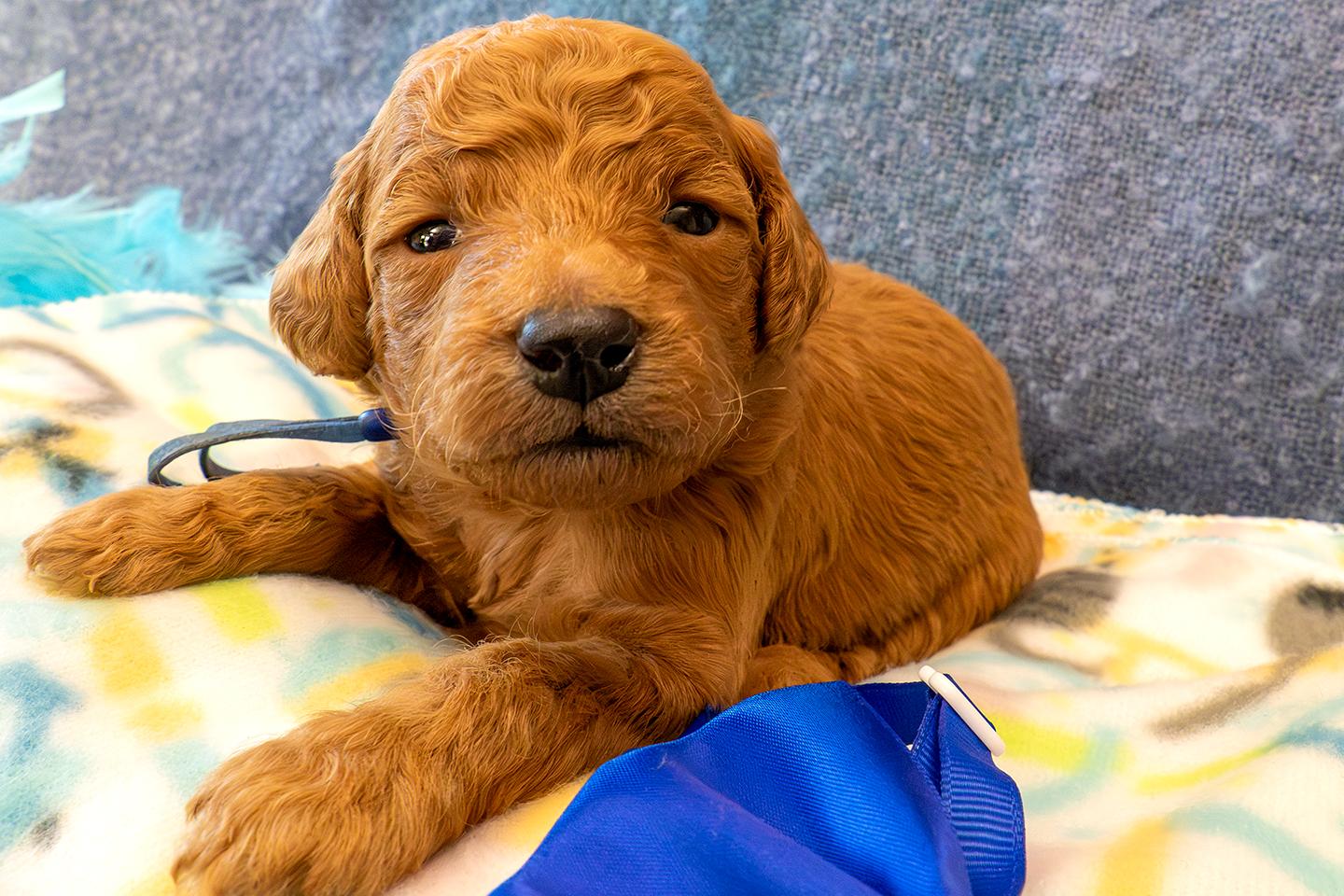 We have had our puppy for two weeks now, and are absolutely in love with him! Tucker (formerly Saffron) is an absolute joy. He is confident and comfortable around men, women, kids and other dogs. He has a sweet playful disposition, exactly what Debra had told me to expect. He is a good eater, and shows zero signs of food aggression. Debra was responsive and helpful in both making a puppy selection and getting us ready to bring him home. She even managed to arrange transportation to CA with another puppy parent! Thank you Debra!